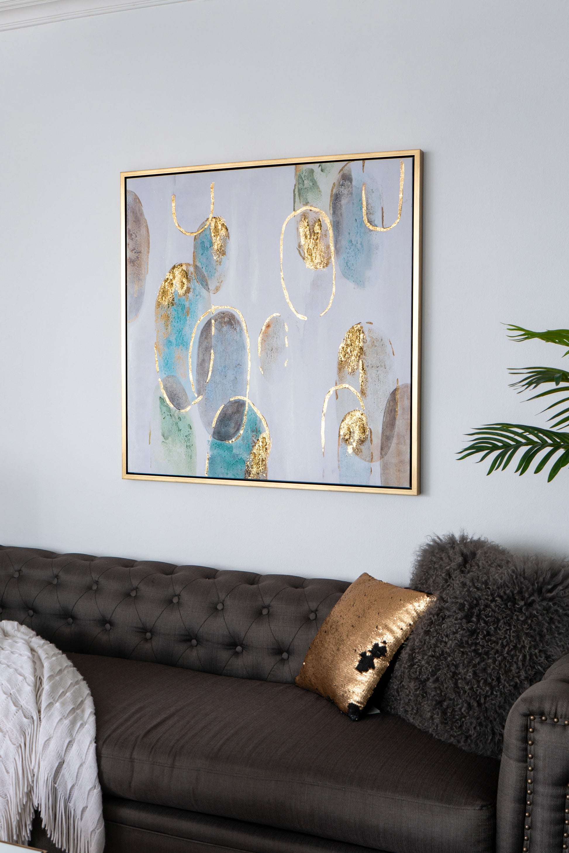 Modern Oil Painting, Square Framed Wall Art For Living Room Dining Room - Multicolor