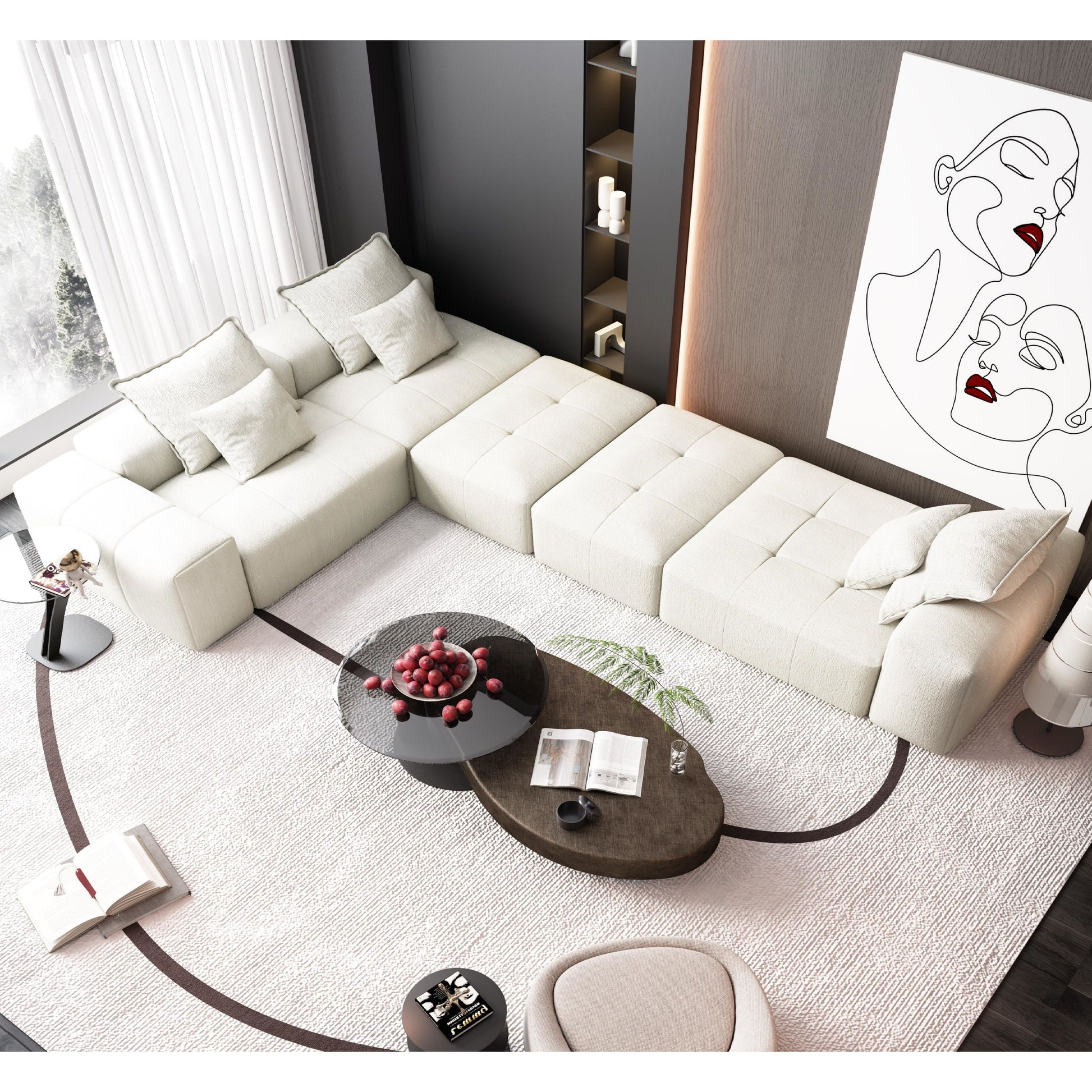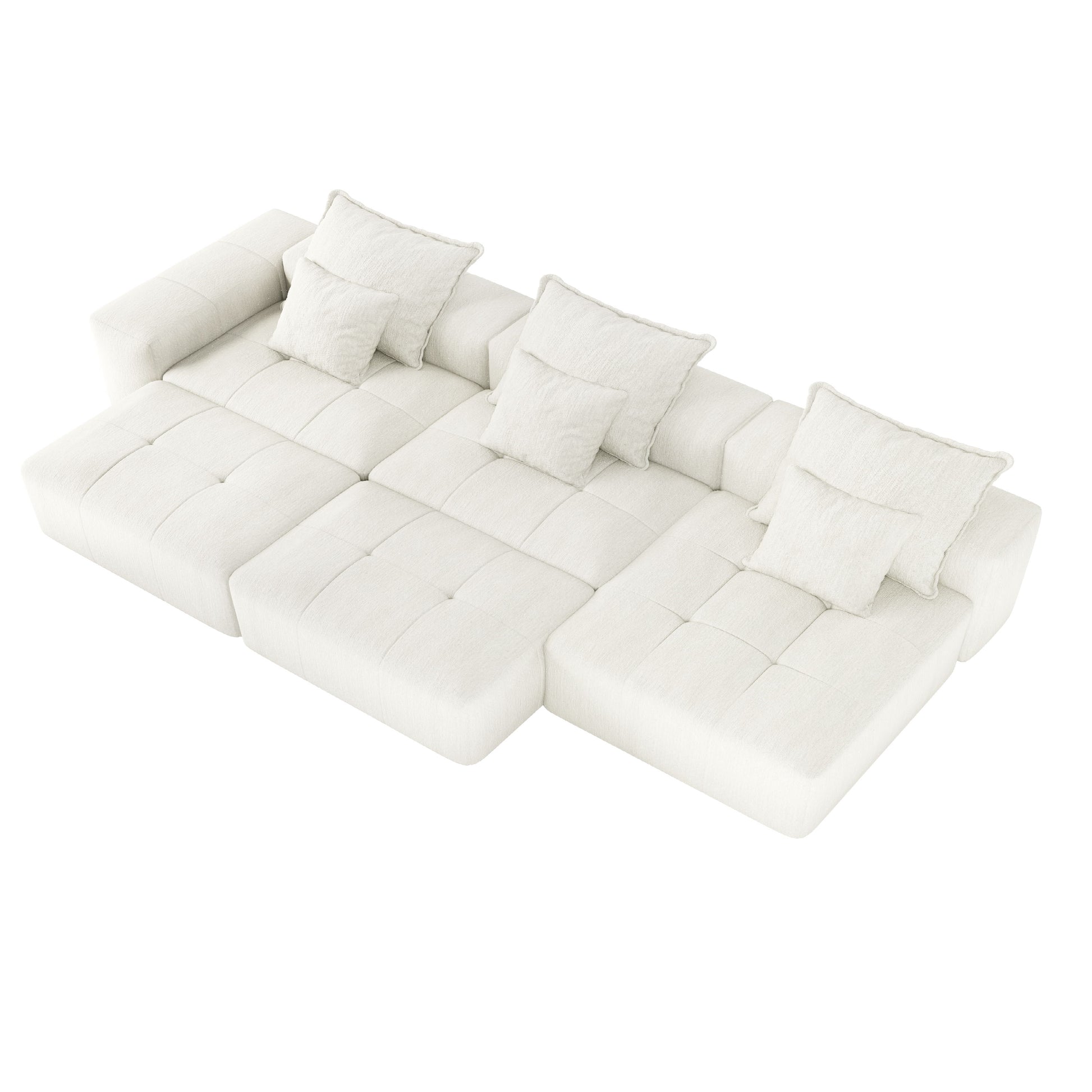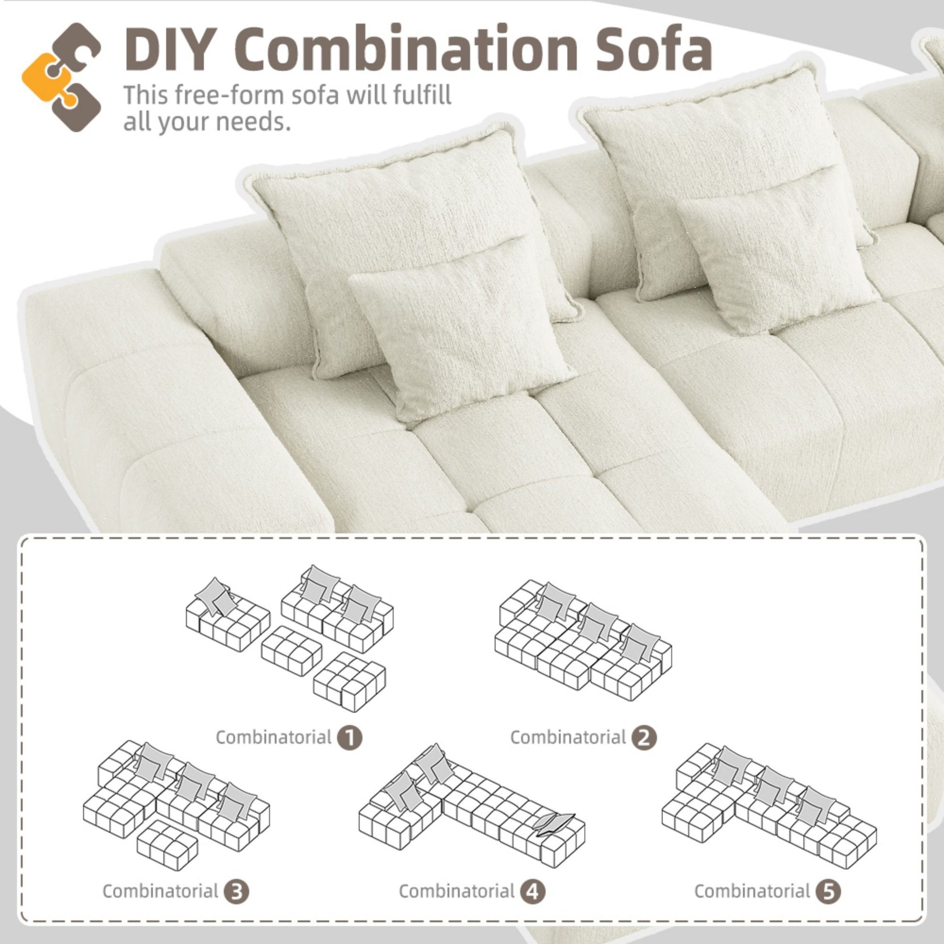 Modern Oversized Modular Sectional Sofa, Sparkling Chenille Fabric Soft Cushion Sofa With 6 Pillows, 6 Pieces Diy Combination Tufted Sofa, No Assembly Required - Beige