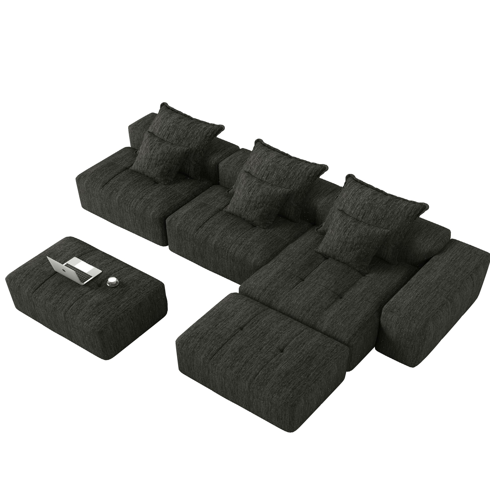 Modern Oversized Modular Sectional Sofa, Sparkling Chenille Fabric Soft Cushion Sofa With 6 Pillows, 6 Pieces Diy Combination Tufted Sofa, No Assembly Required - Black