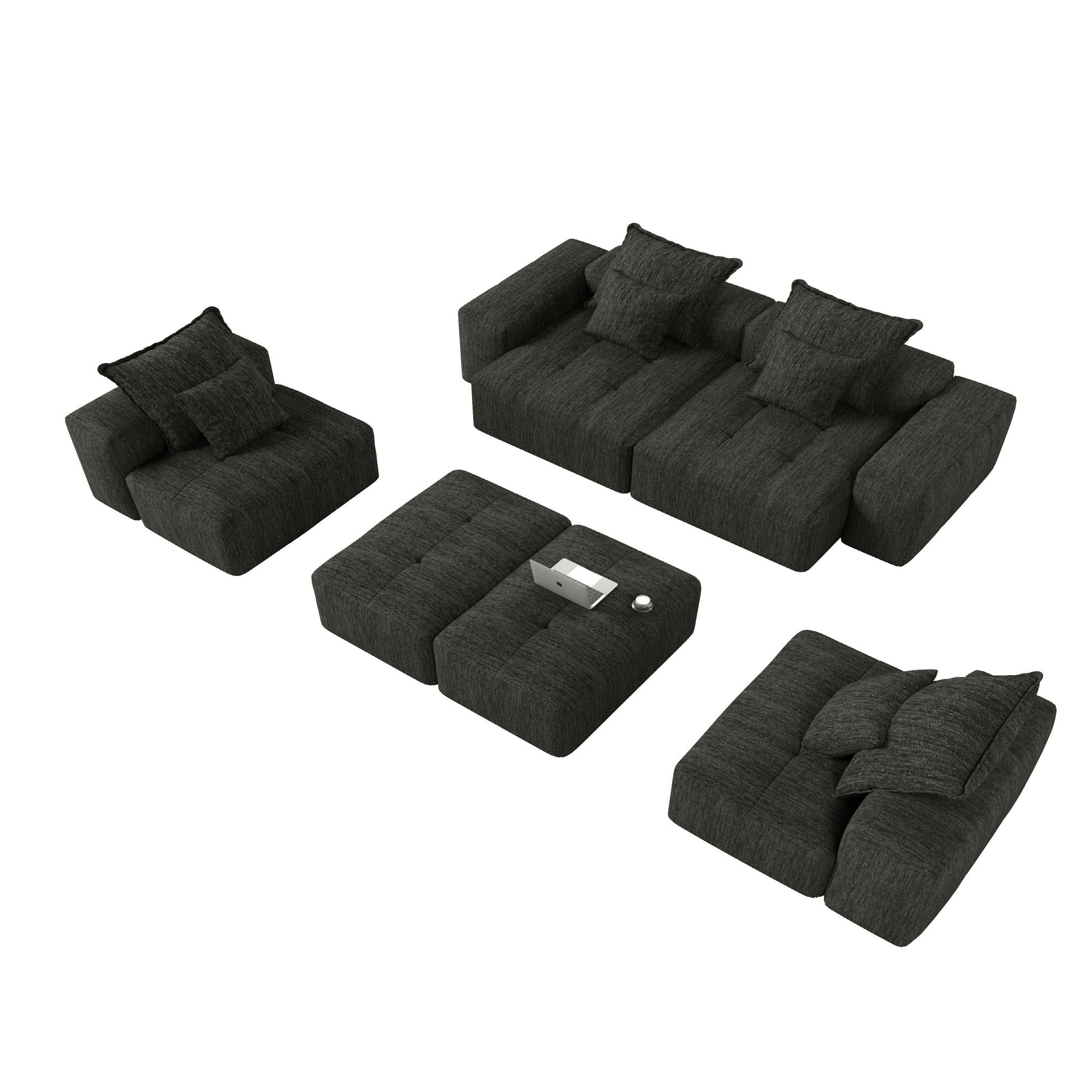 Modern Oversized Modular Sectional Sofa, Sparkling Chenille Fabric Soft Cushion Sofa With 8 Pillows, 8 Pieces Diy Combination Tufted Sofa, No Assembly Required - Black