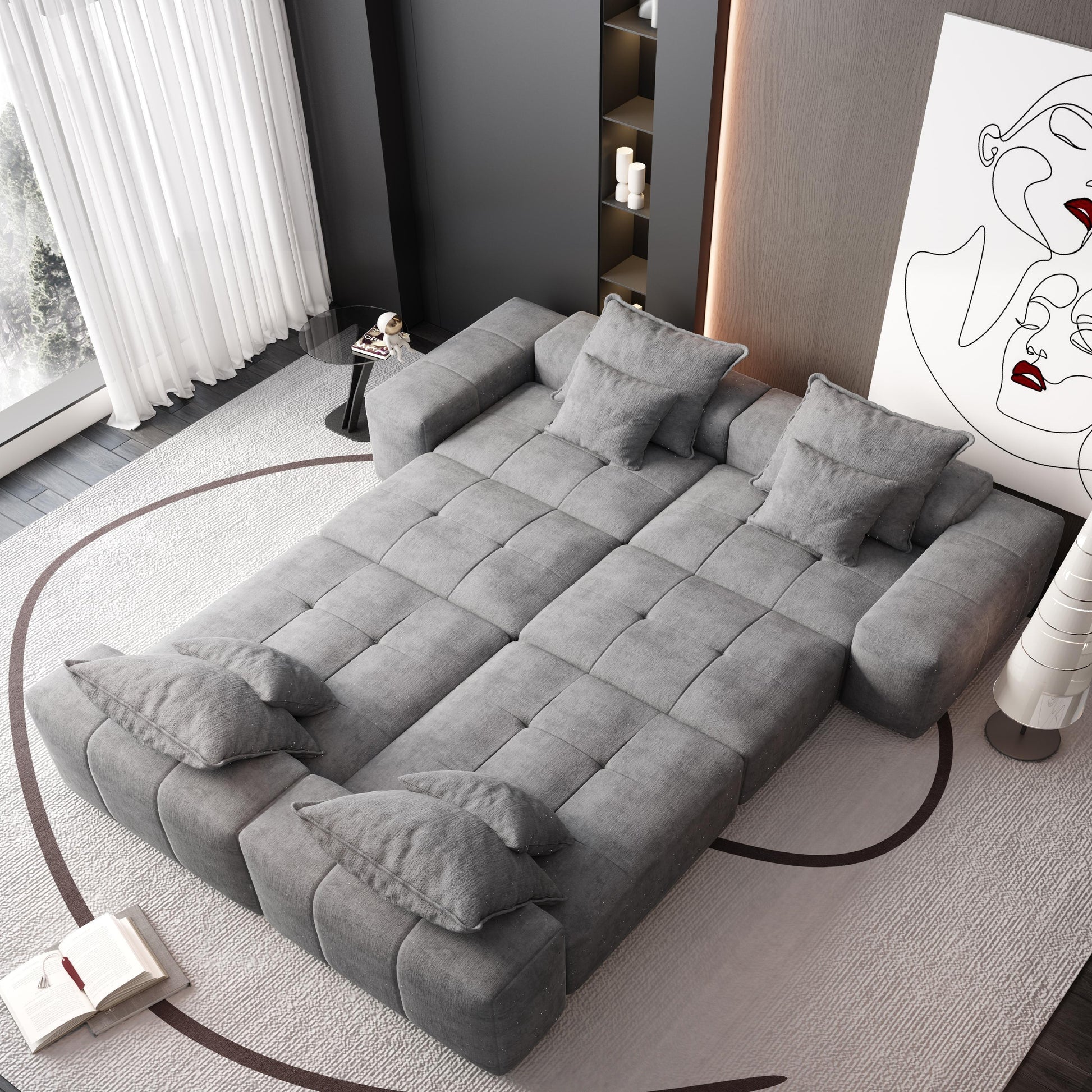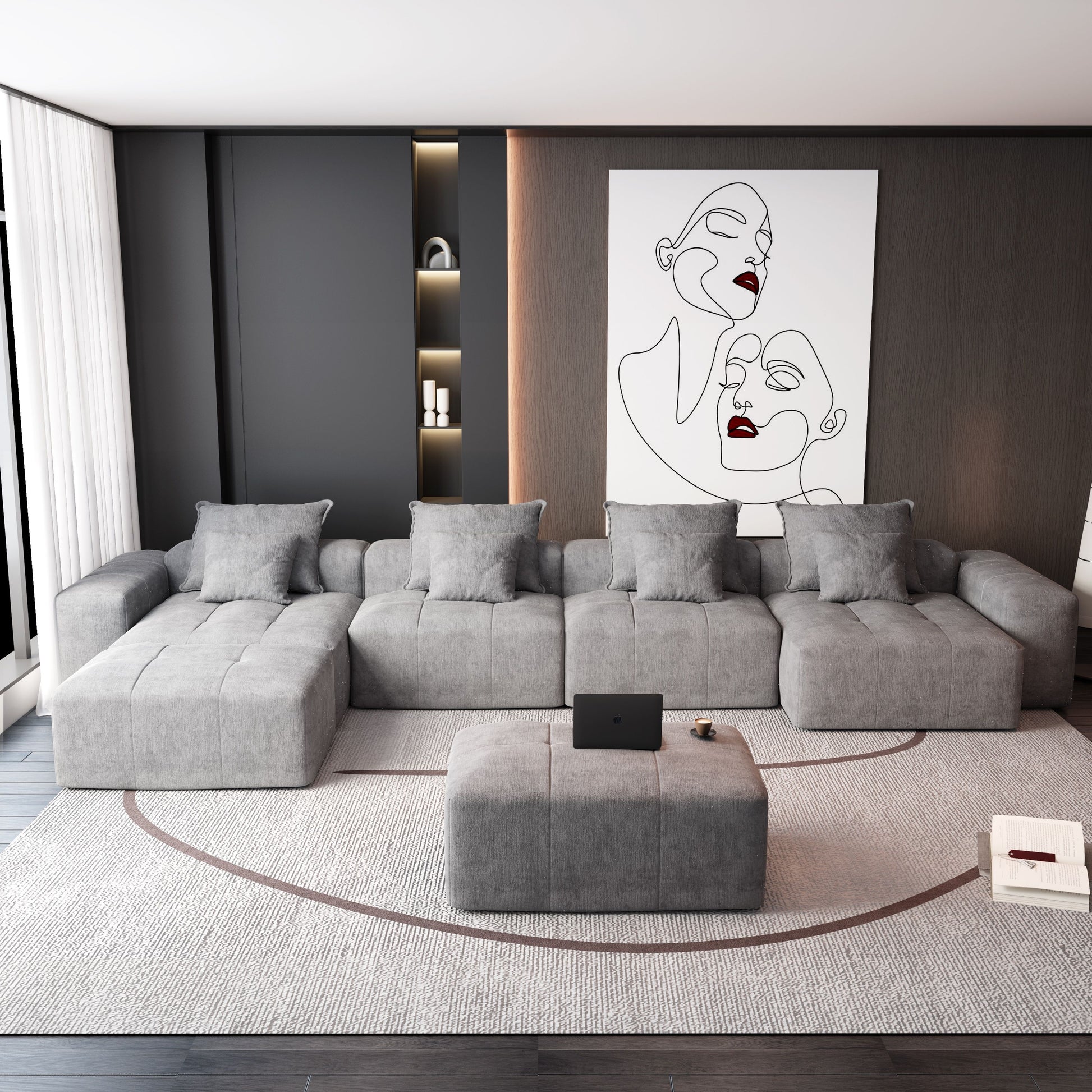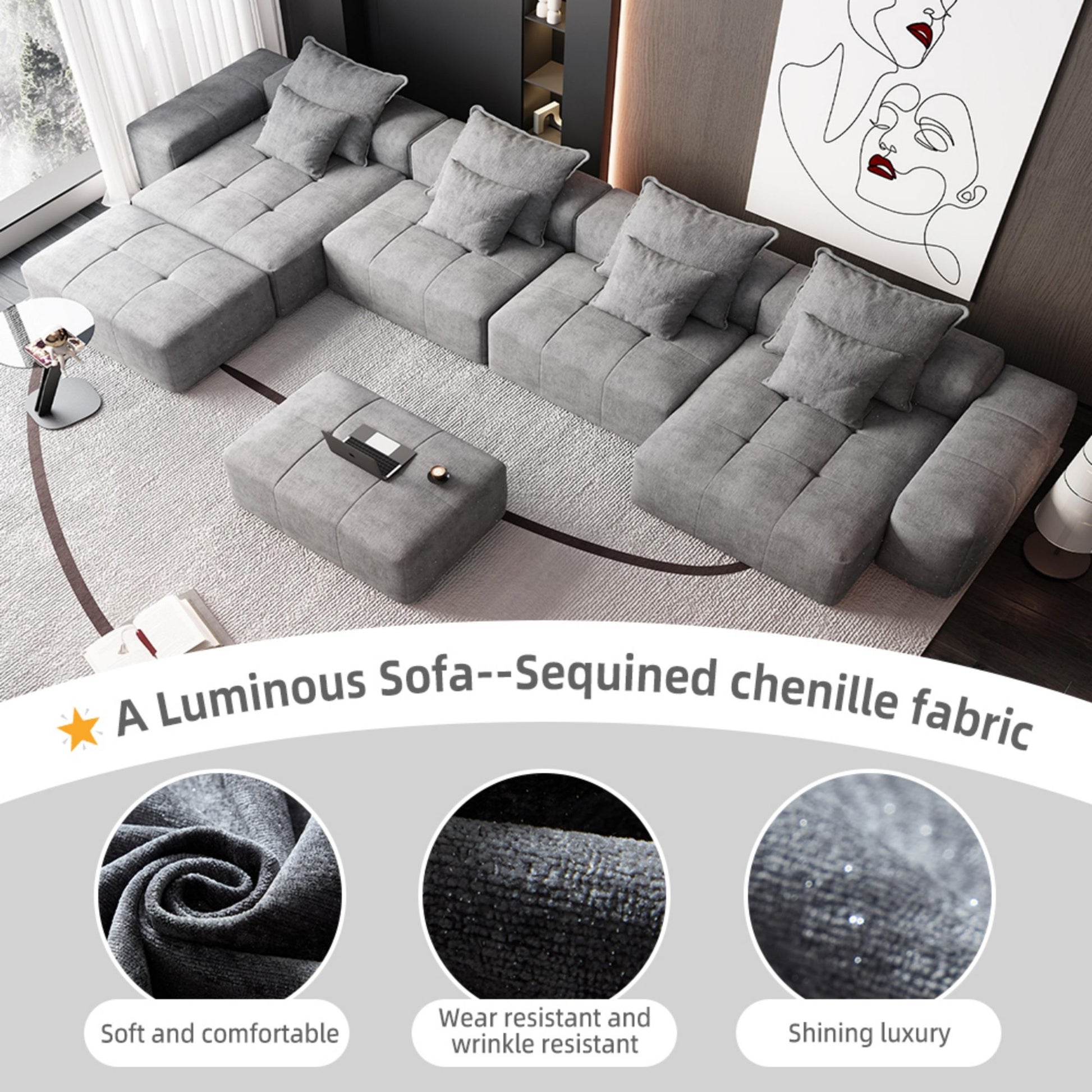 Modern Oversized Modular Sectional Sofa, Sparkling Chenille Fabric Soft Cushion Sofa With 8 Pillows, 8 Pieces Diy Combination Tufted Sofa, No Assembly Required - Gray