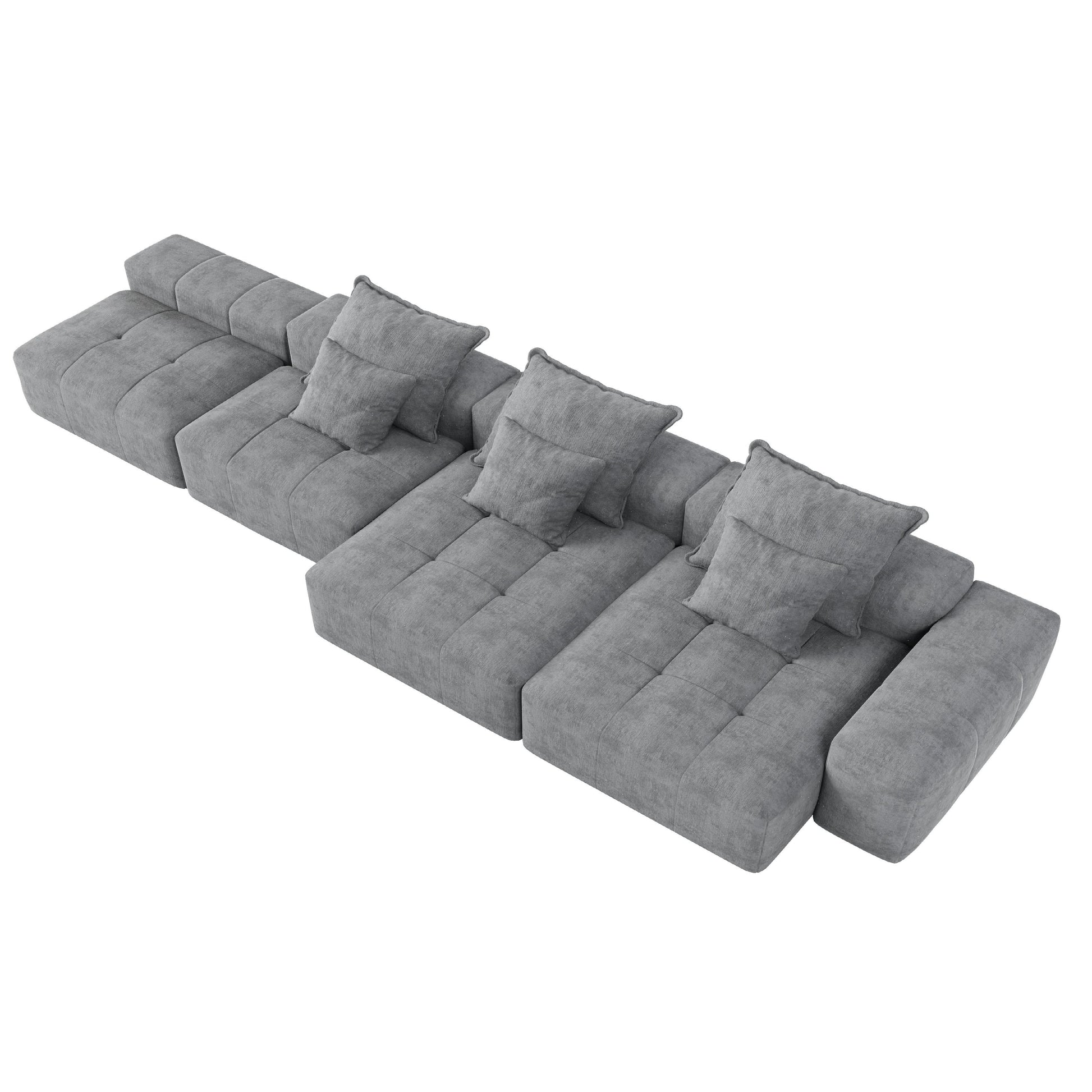 Modern Oversized Modular Sectional Sofa, Sparkling Fabric Soft Cushion Sofa With 6 Pillows, 6 Pieces Diy Combination Tufted Sofa, No Assembly Required - Gray