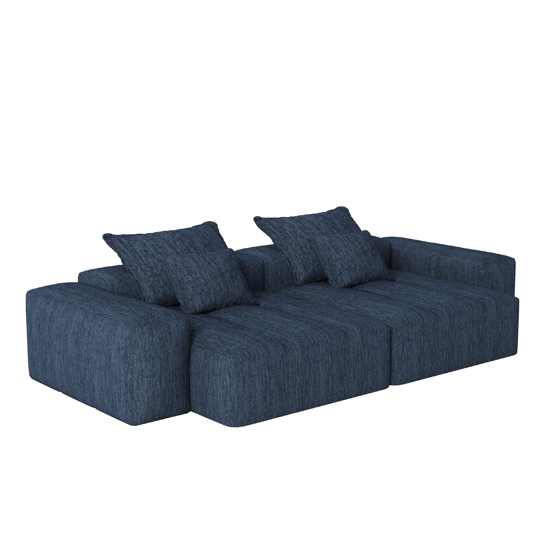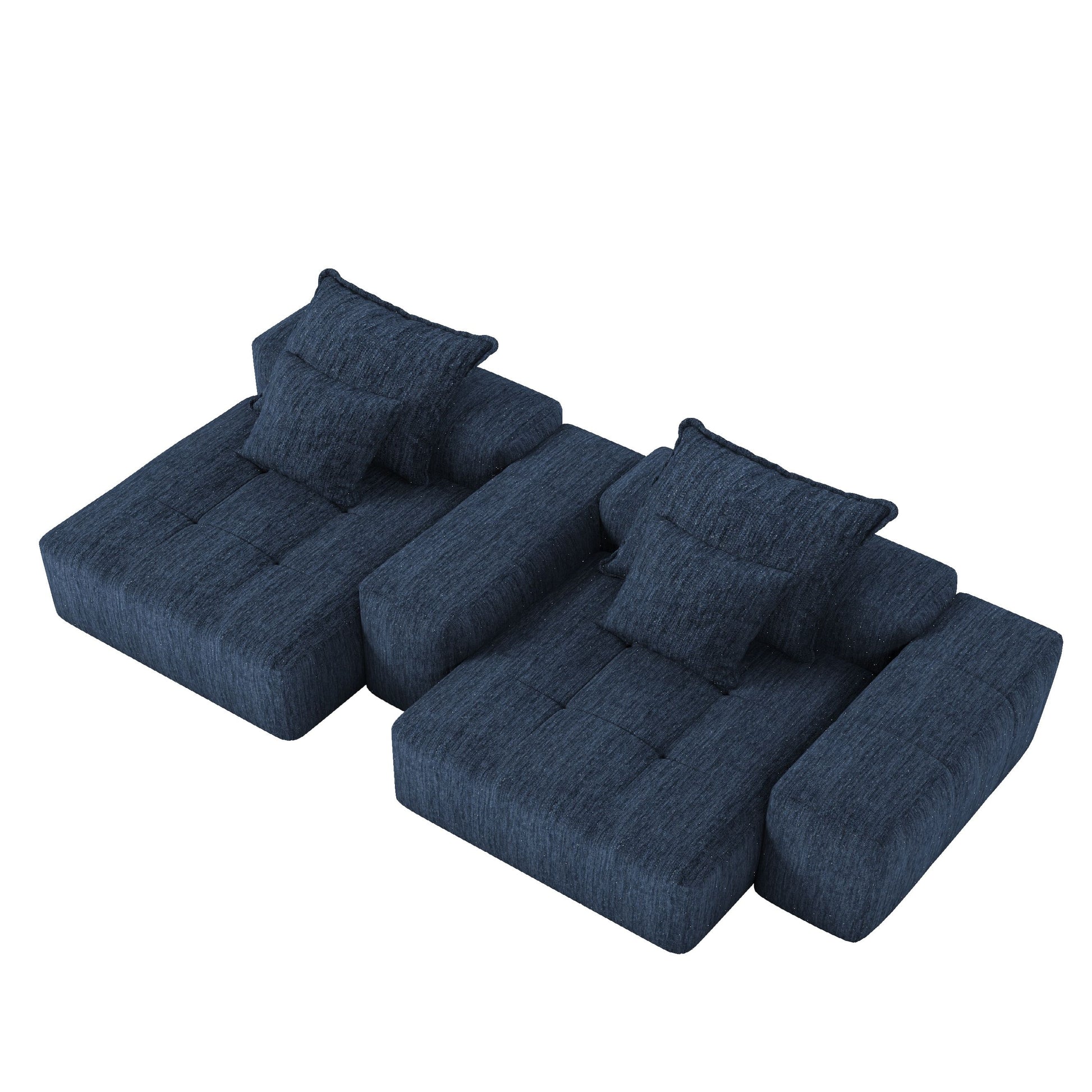 Modern Oversized Modular Sectional Sofa With 2 Chaise Lounge And 2 Armrest, Sparkling Chenille Fabric Soft Cushion Sofa With 4 Pillows, 4 Pieces Diy Combination Tufted Sofa, No Assembly Required - Blue