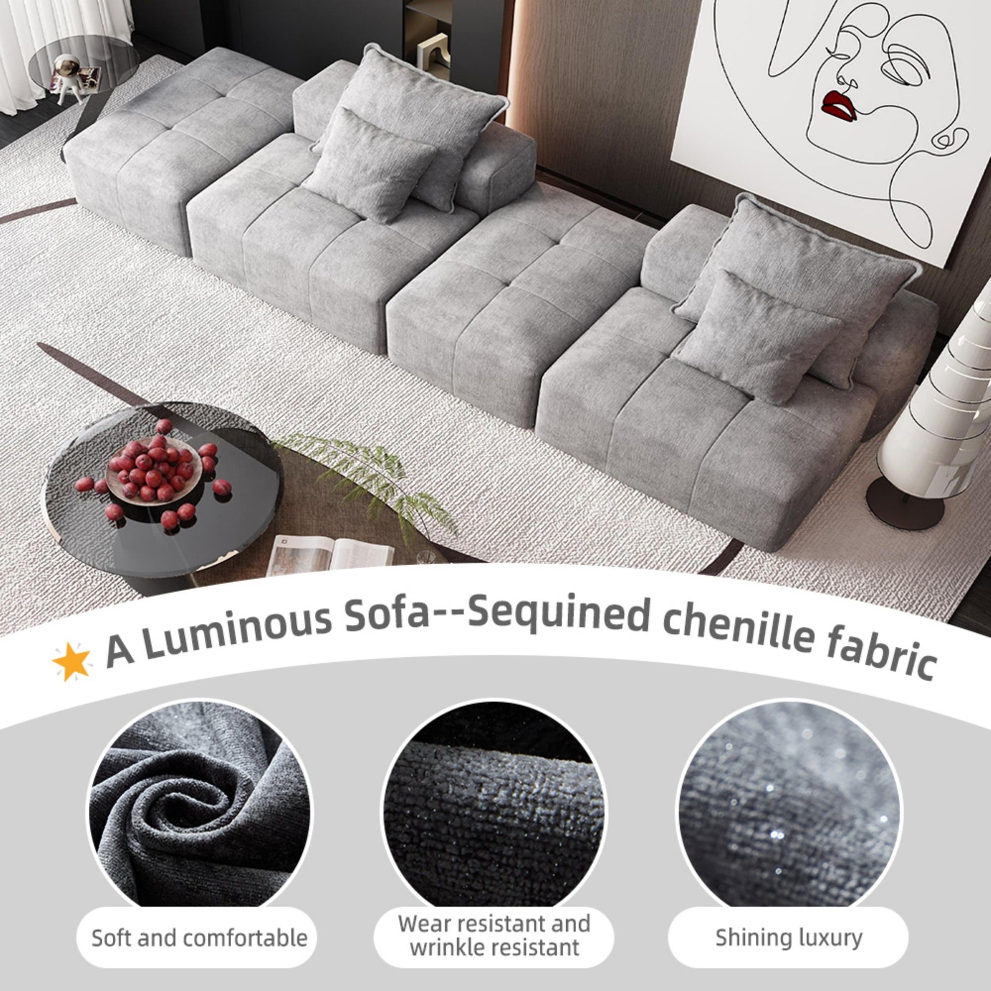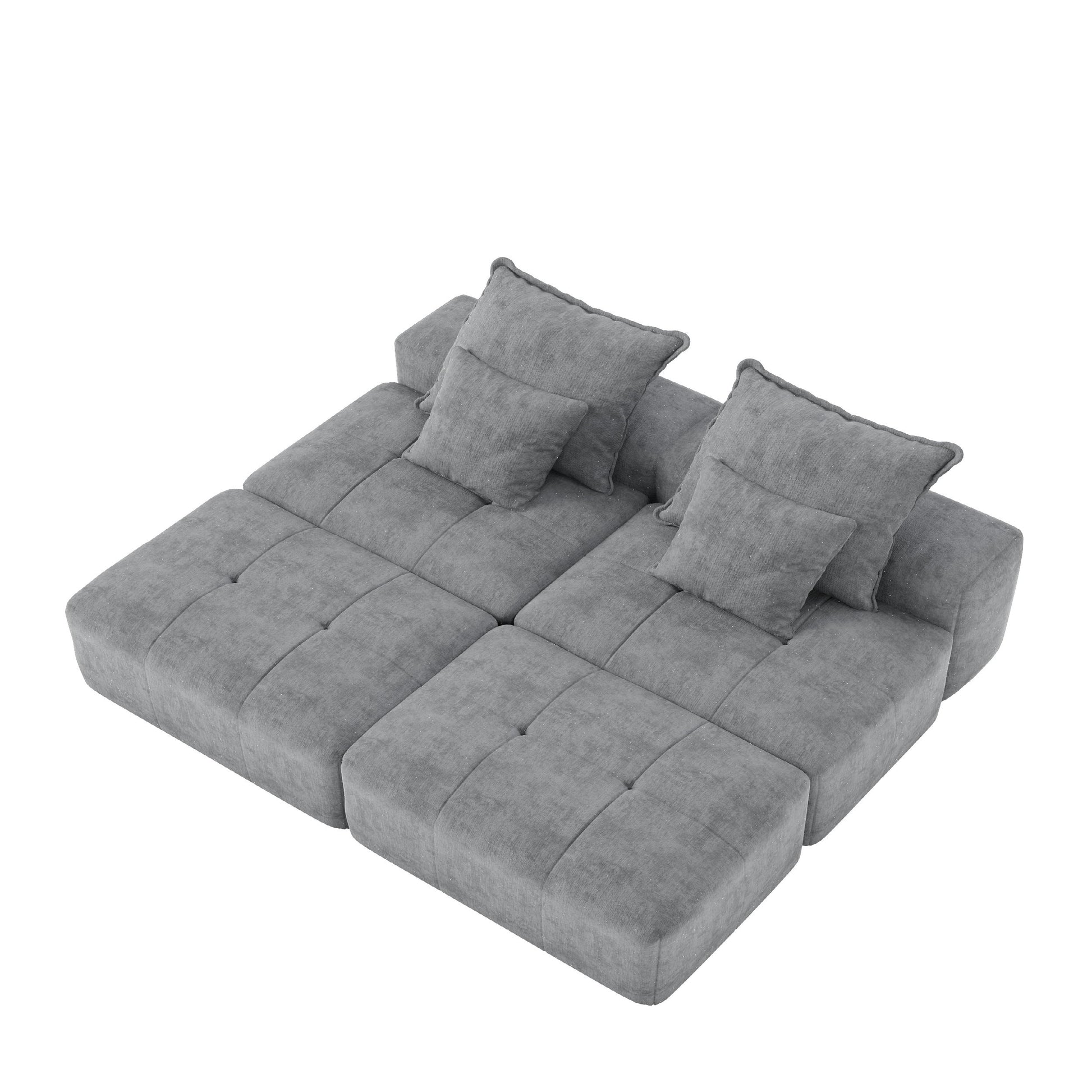 Modern Oversized Modular Sectional Sofa With 2 Ottoman And 2 Seat, Sparkling Chenille Fabric Soft Cushion Sofa With 4 Pillows, 4 Pieces Diy Combination Tufted Sofa, No Assembly Required - Gray