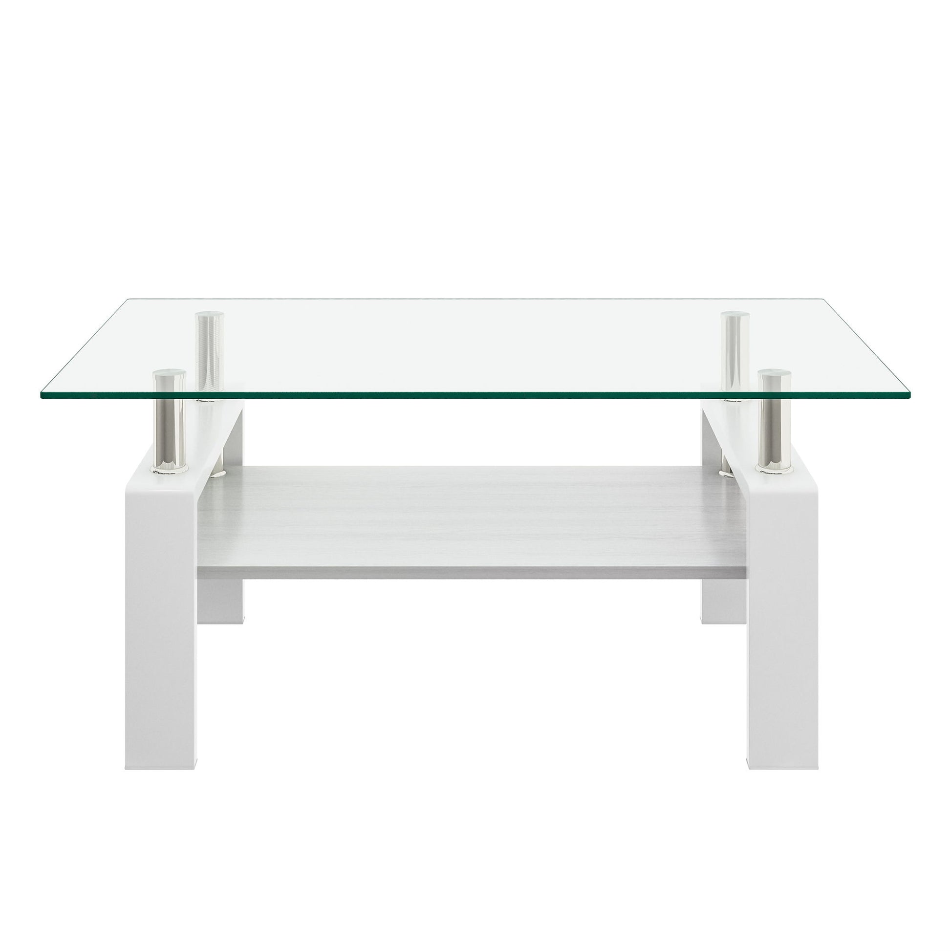 Modern Rectangular Coffee Table & Tempered Glass Top Layer, Table For Living Room - Transparent