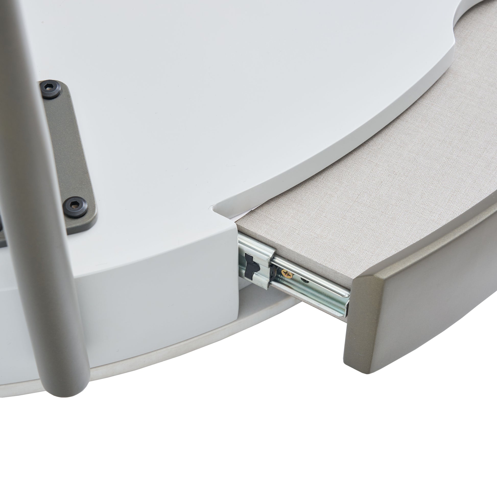 Modern Round Coffee Table With Storage Drawers Handcrafted Ceramic Inlay Tabletop 2 Tone Wood Legs Scandinavian Living Room Center Table - White / Gray