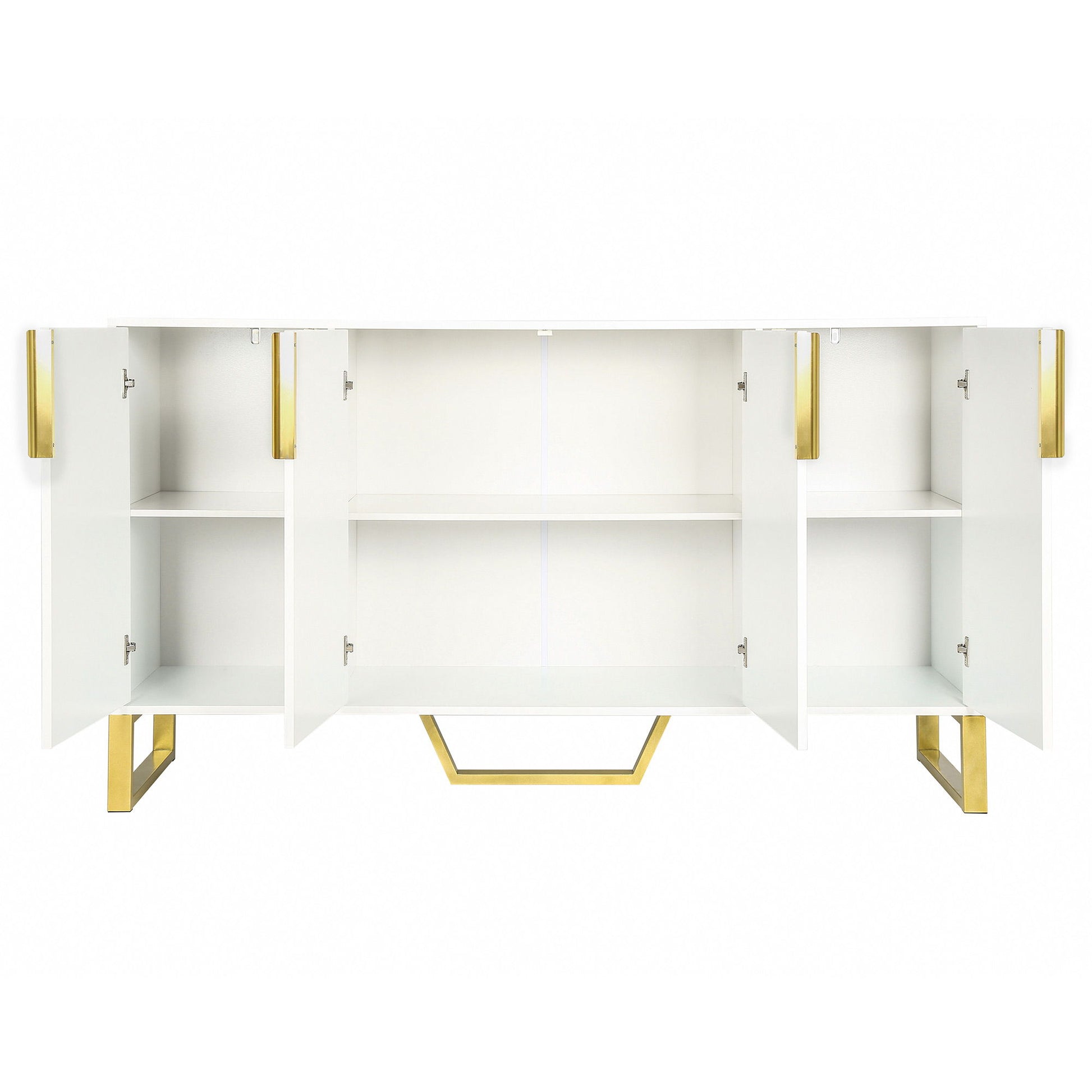 Modern Sideboard With Four Doors, Metal Handles & Legs And Adjustable Shelves Kitchen Cabinet - White