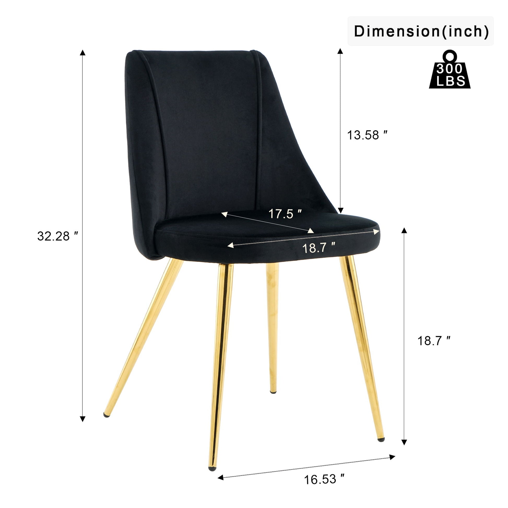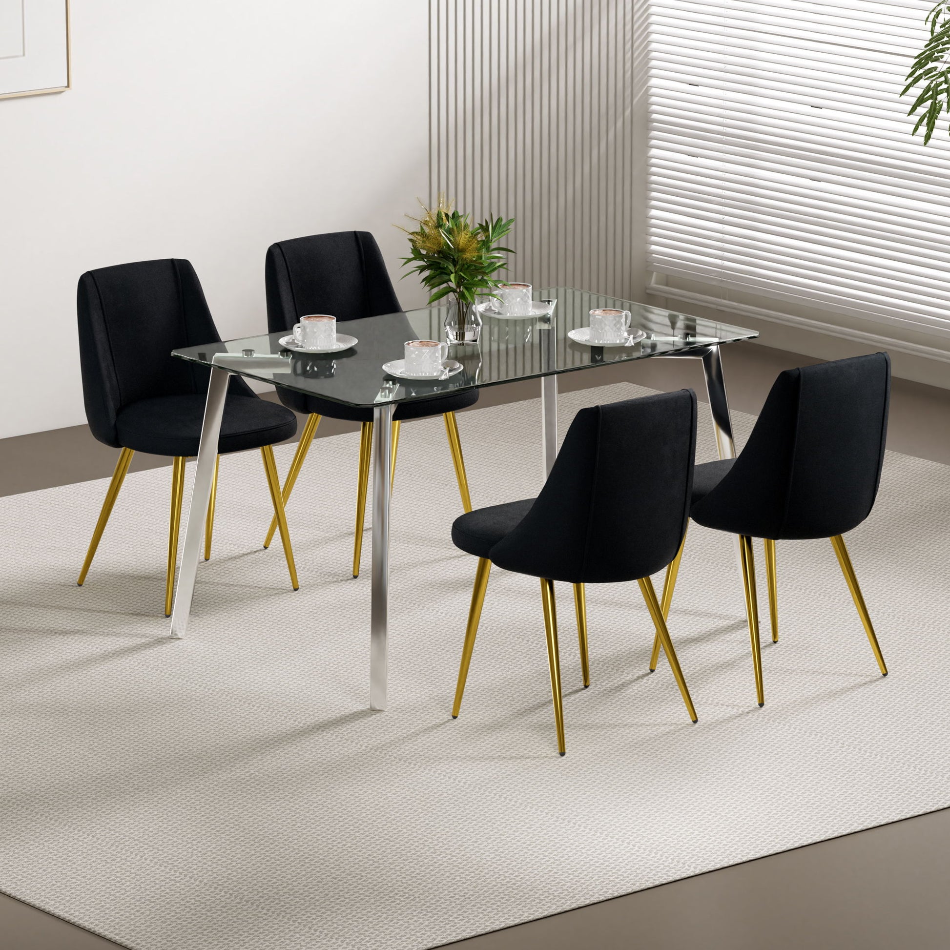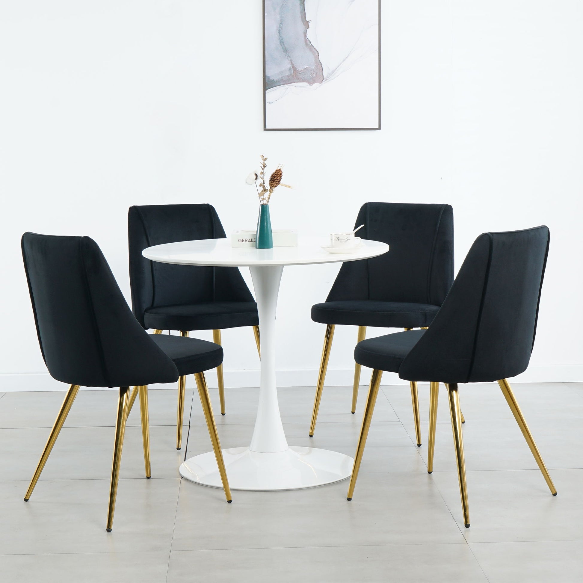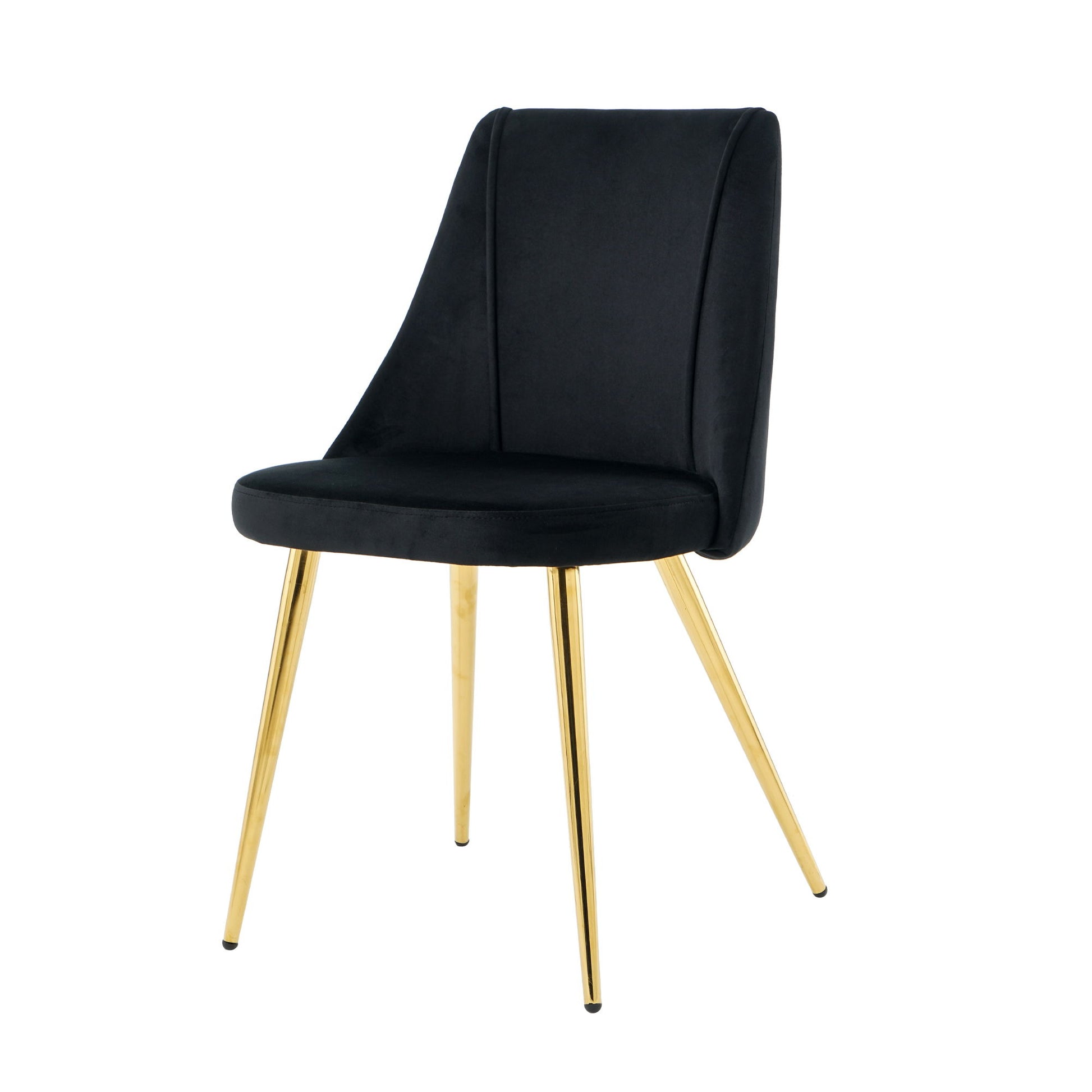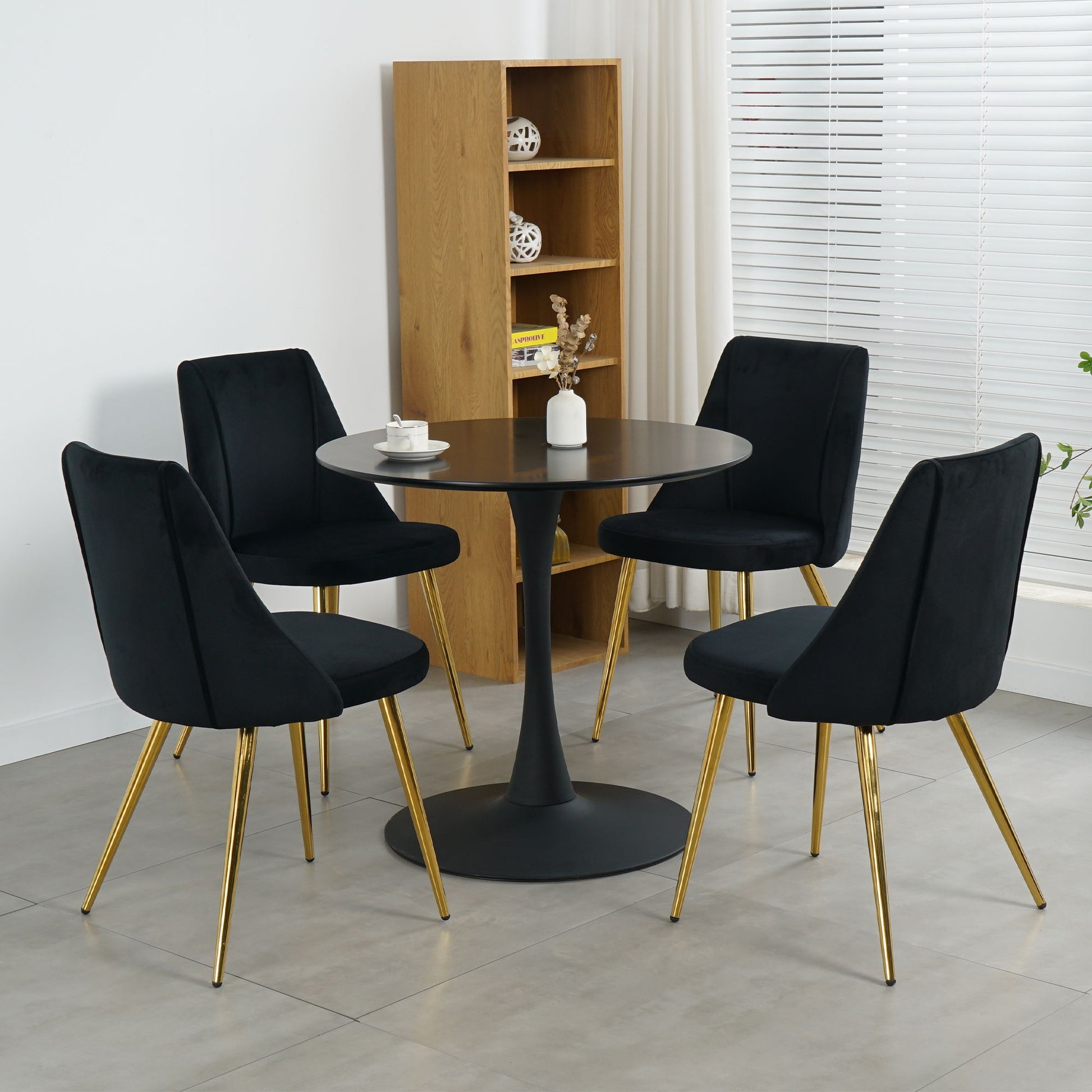 Modern Simple Velvet Dining Chair Set With Gold Metal Legs (Set of 4) - Black