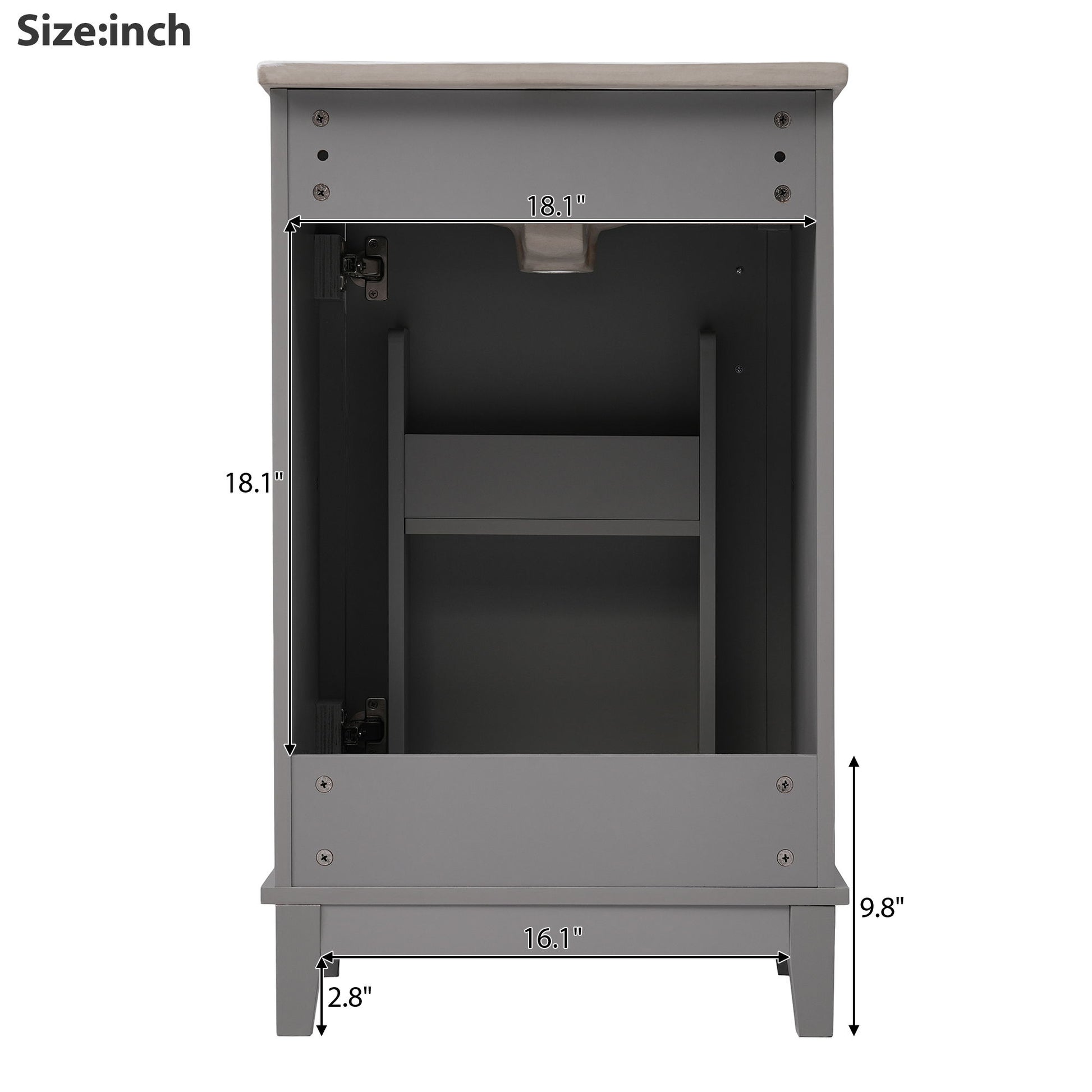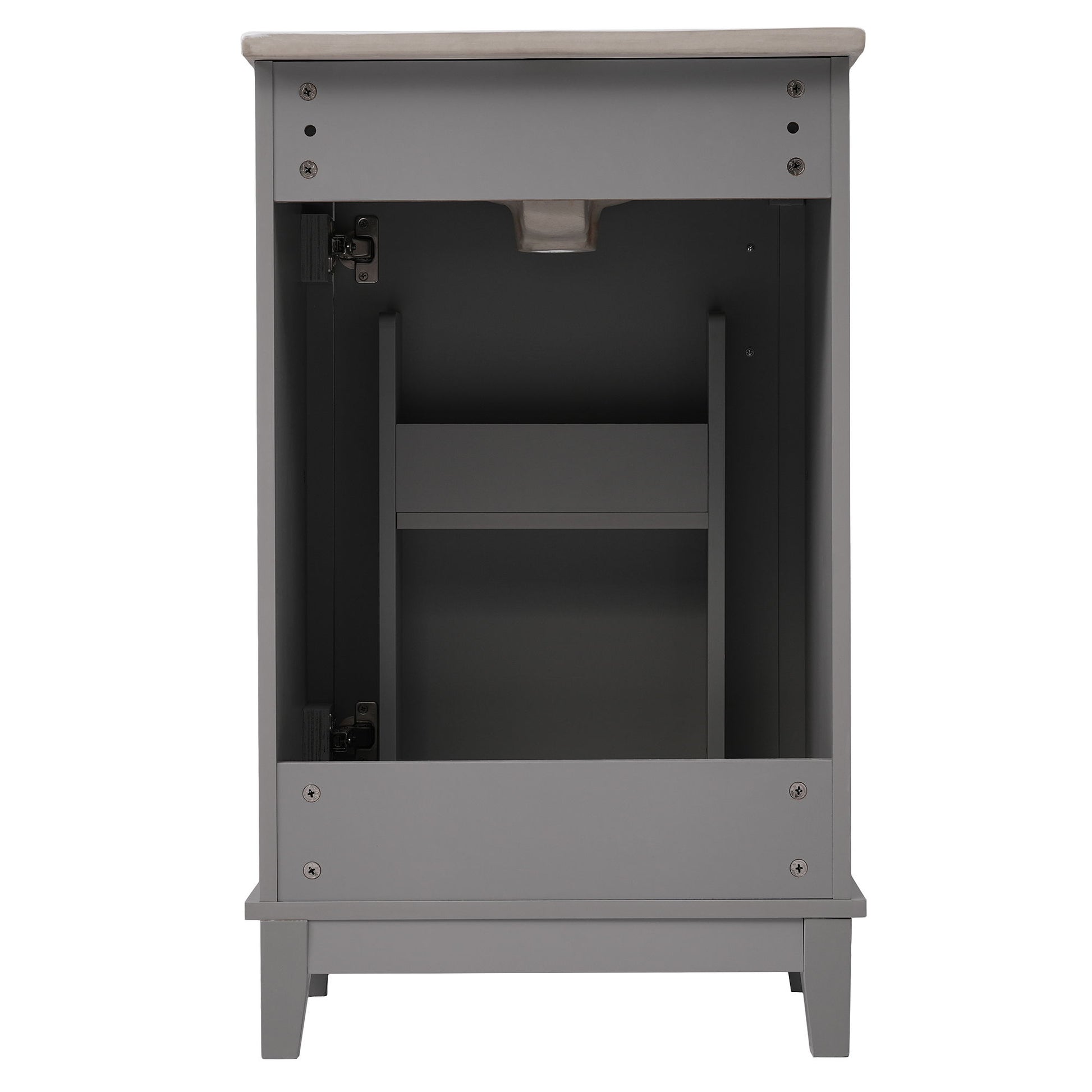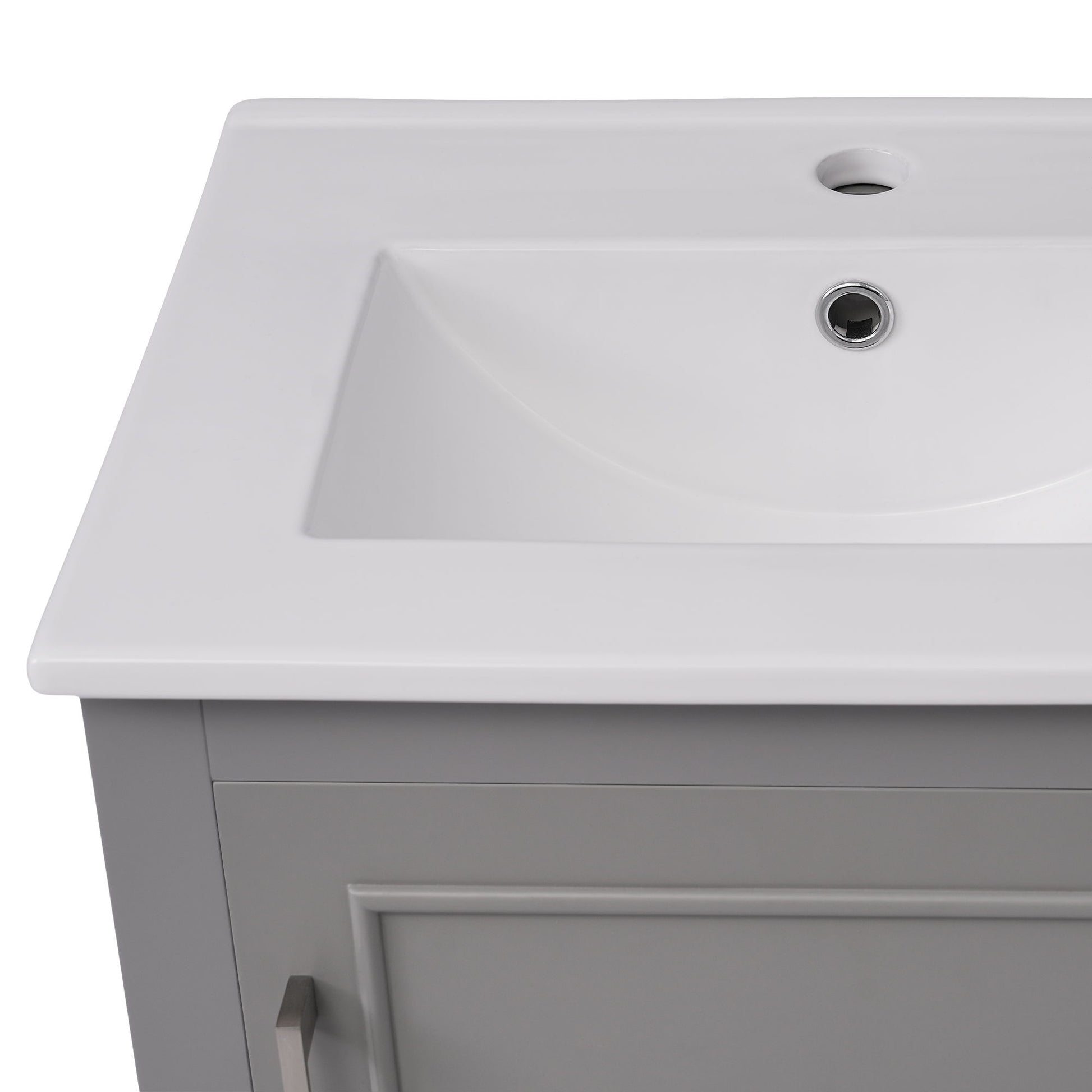Modern Small Bathroom Vanity Cabinet With Ceramic Basin, Ample Storage, 1 Soft-Close Door - Gray