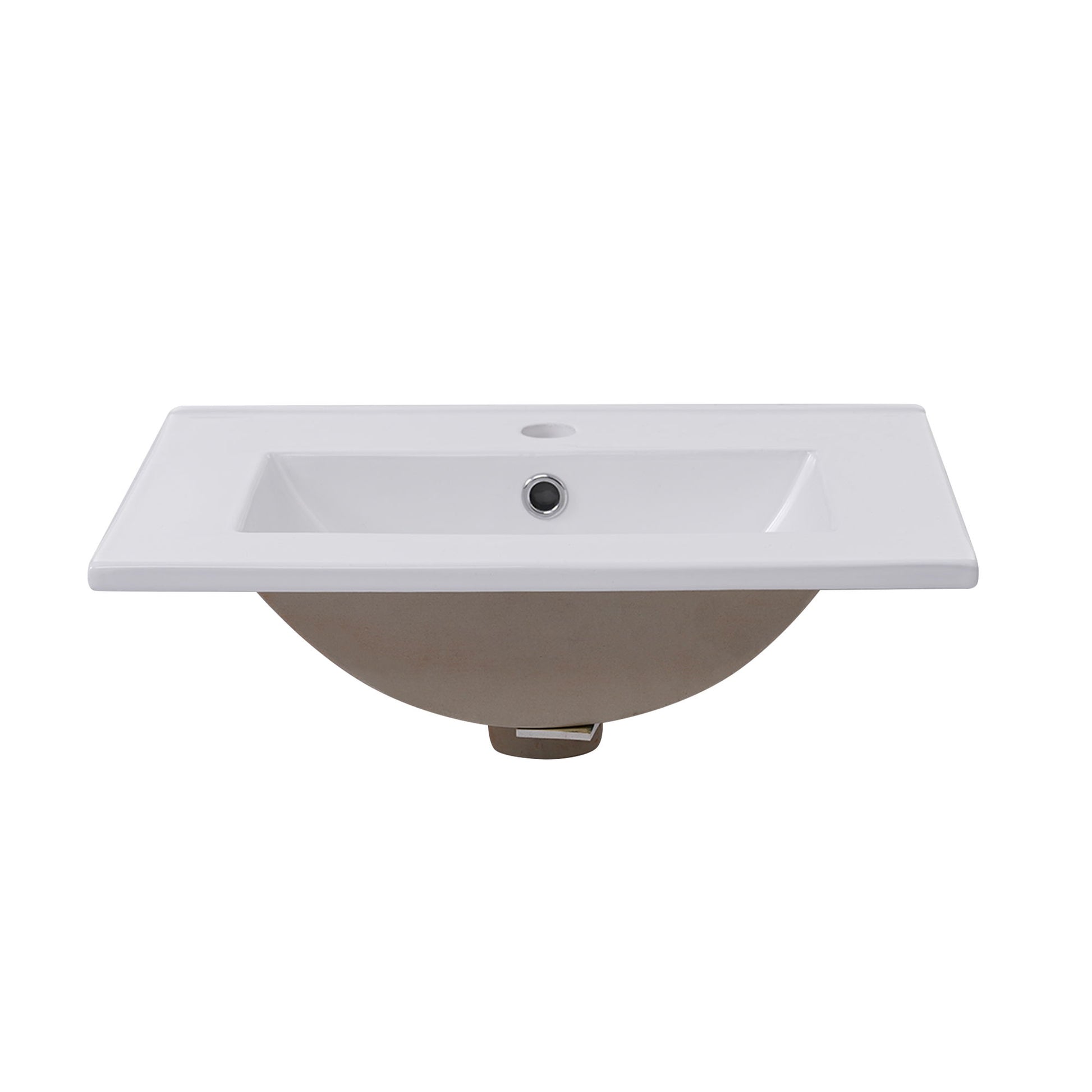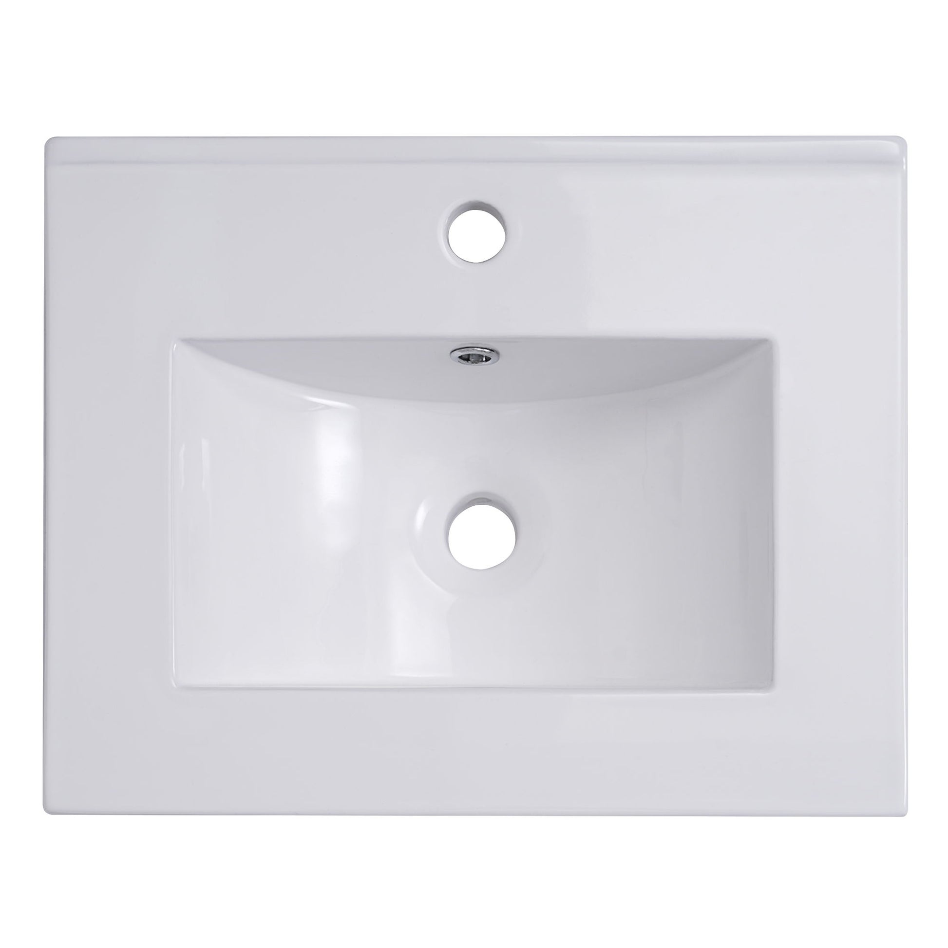 Modern Small Bathroom Vanity Cabinet With Ceramic Basin, Ample Storage, 1 Soft-Close Door - White