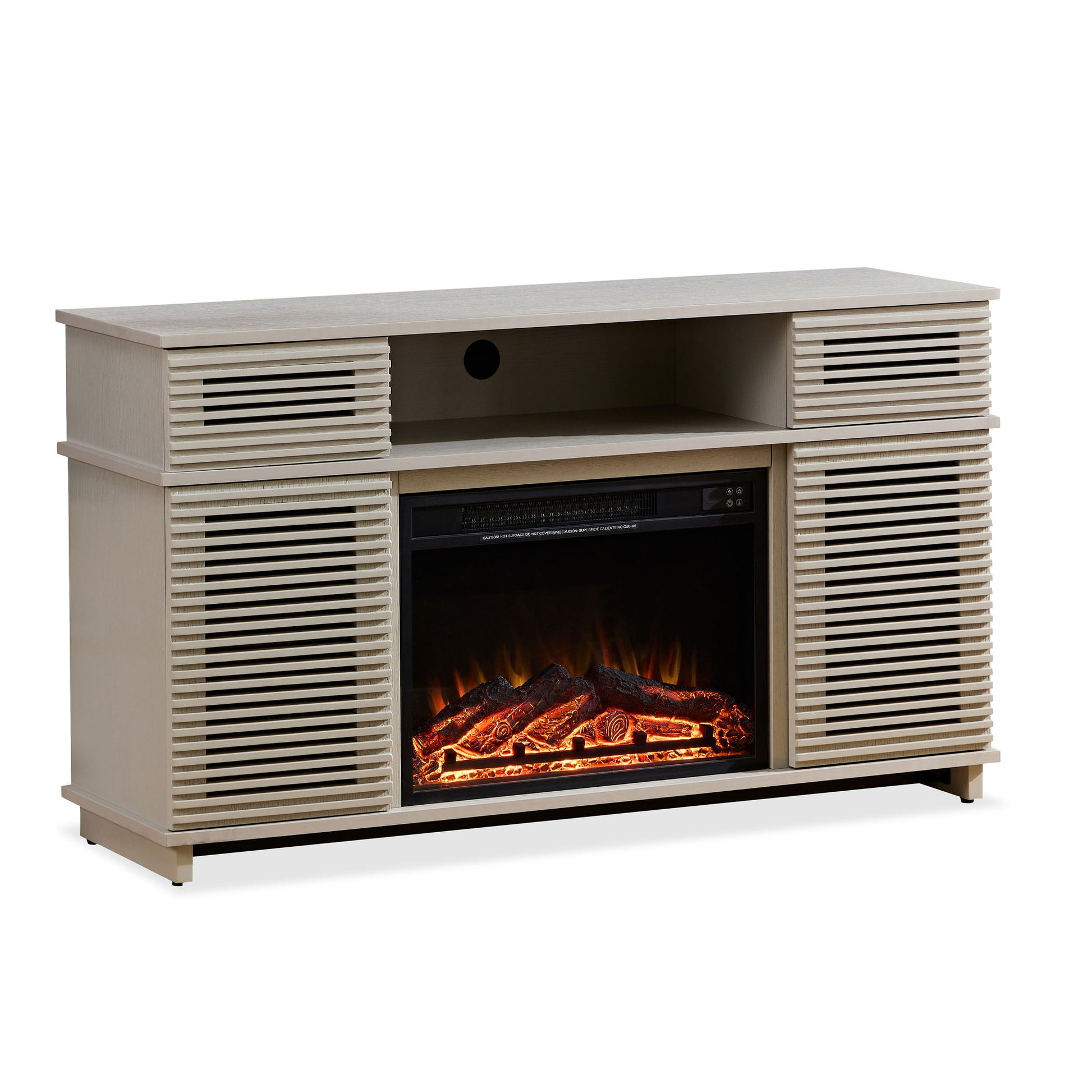- Embedded Fireplace: Featuring an embedded fireplace in the center compartment with a remote control, easily adjust the temperature, bringing warmth and comfort to your home, becoming a focal point in the space.