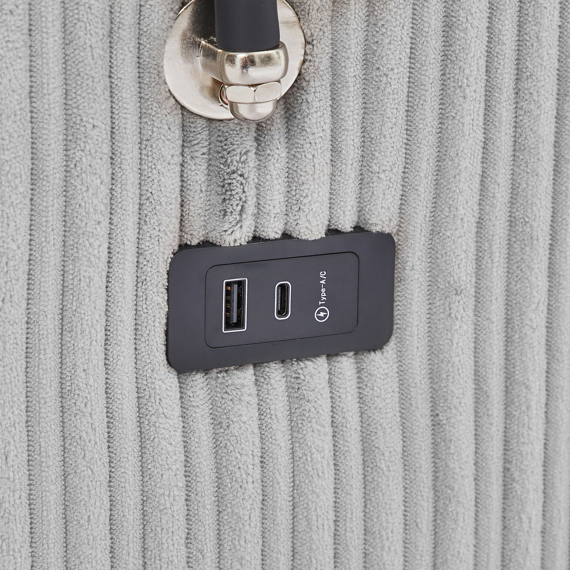 Modern Style Single Sofa Sofa Couch With Storage Space, A Movable Ottoman, Two USB Ports, Two Cup Holders, A Phone Holder For Living Room - Gray