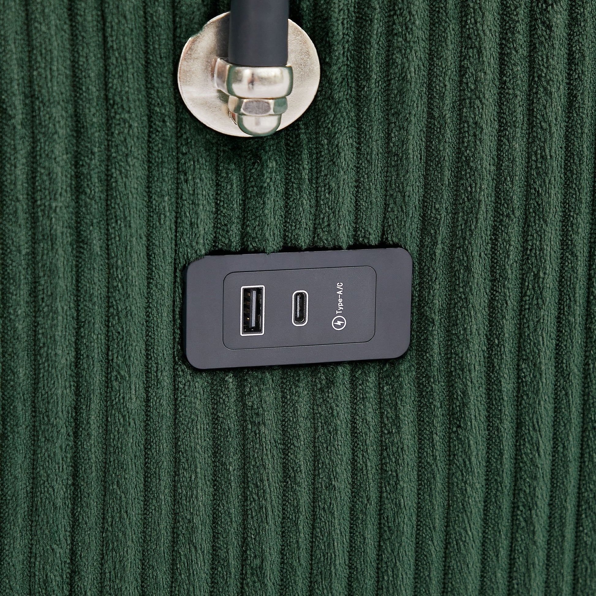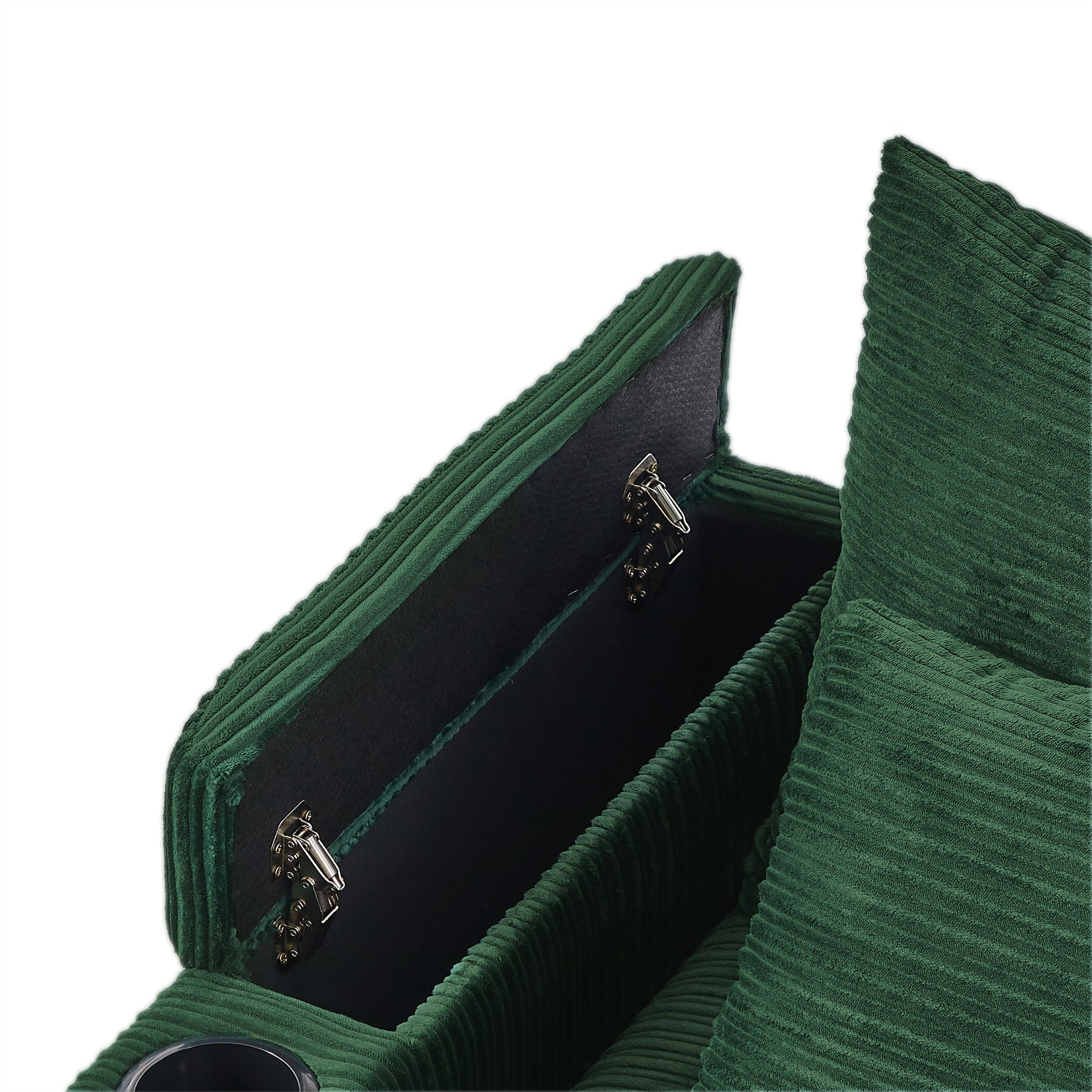Modern Style Single Sofa Sofa Couch With Storage Space, A Movable Ottoman, Two USB Ports, Two Cup Holders, A Phone Holder For Living Room - Green