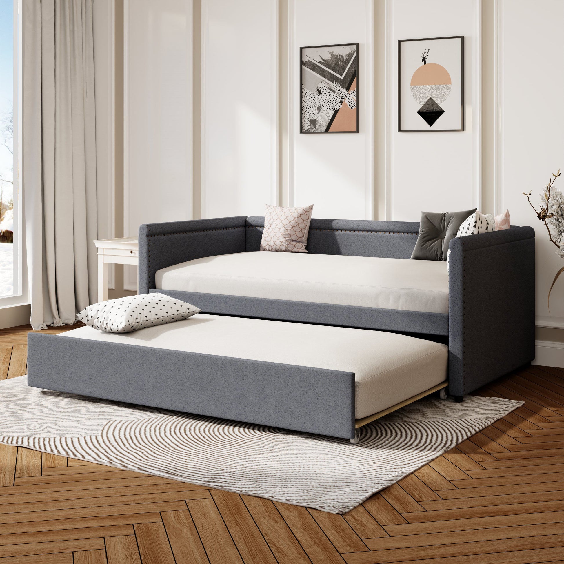 Modern Style Twin Size Upholstered Daybed With Trundle For Guest Room, Small Bedroom, Study Room - Gray