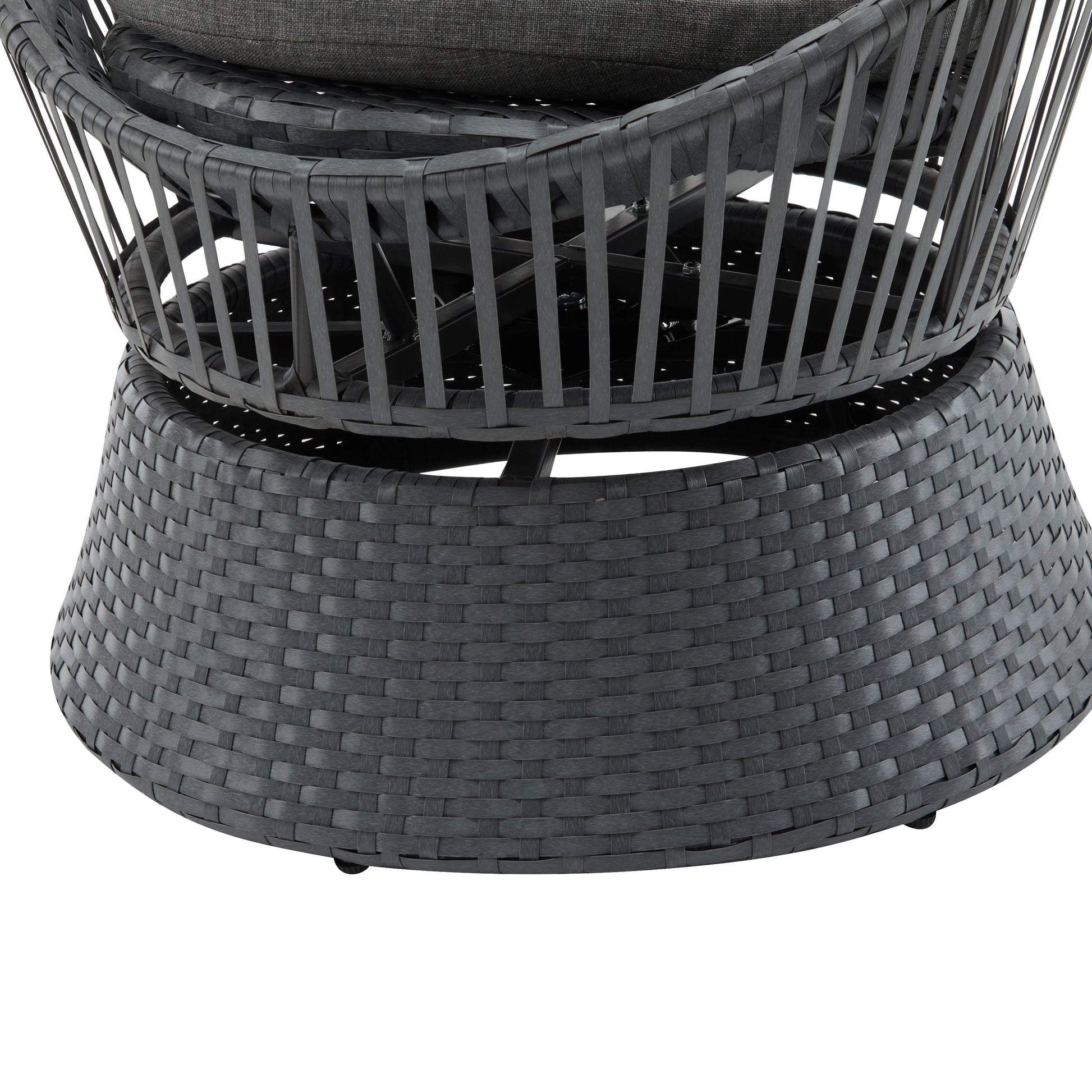 Modern Swivel Wicker Lounge Chair With Pe Rattan And Iron Frame, Round Design - Gray
