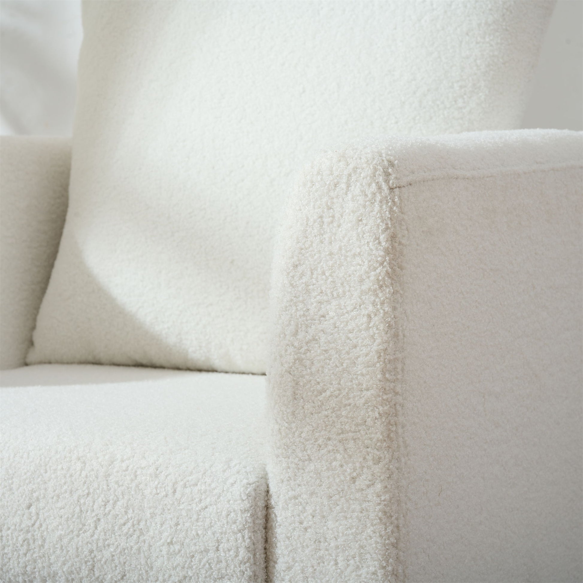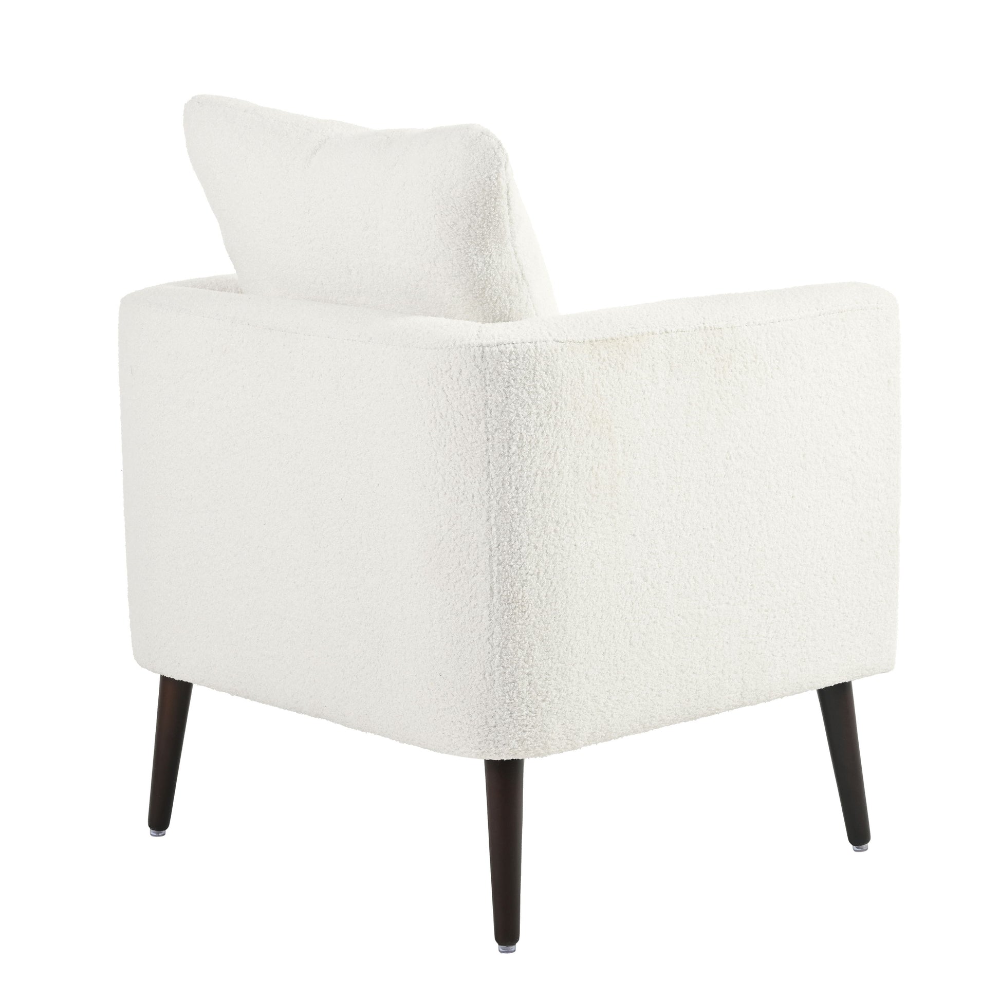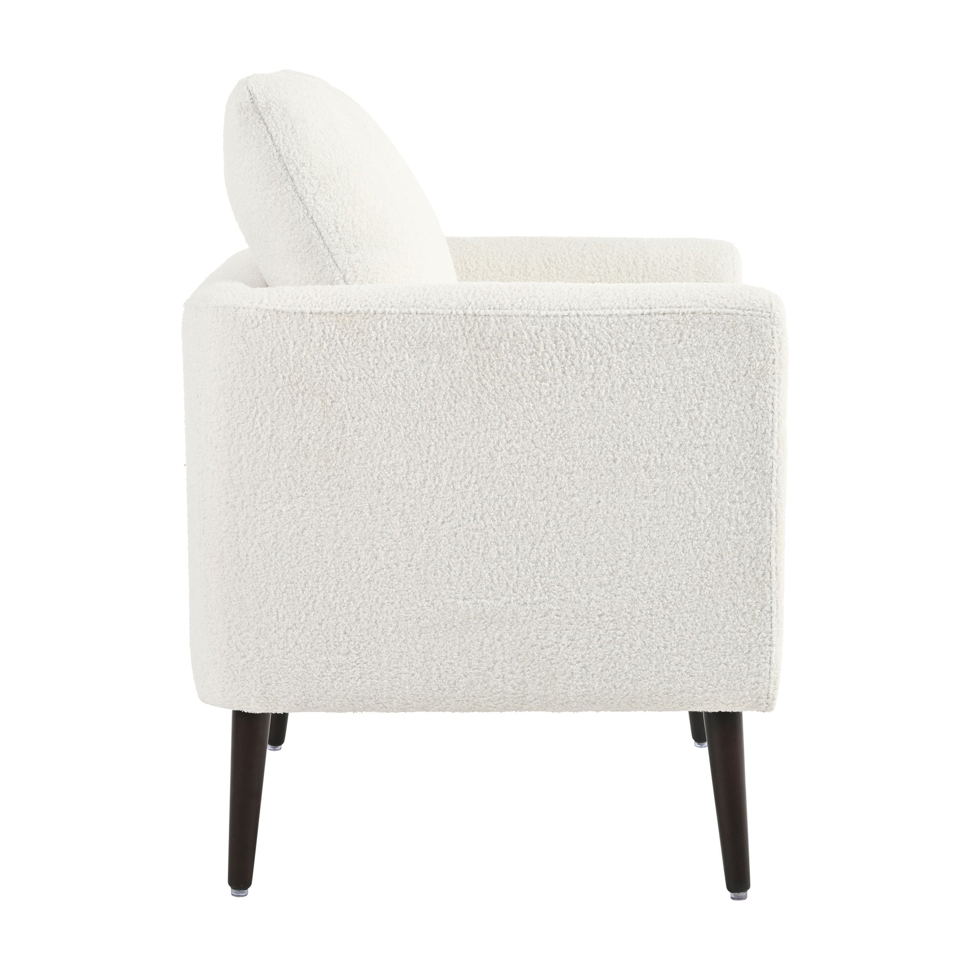 Modern Teddy Fabric Accent Chair - Mid - Century Upholstered Armchair With Pillow And Wood Legs For Living Room, Or Reception Room - White