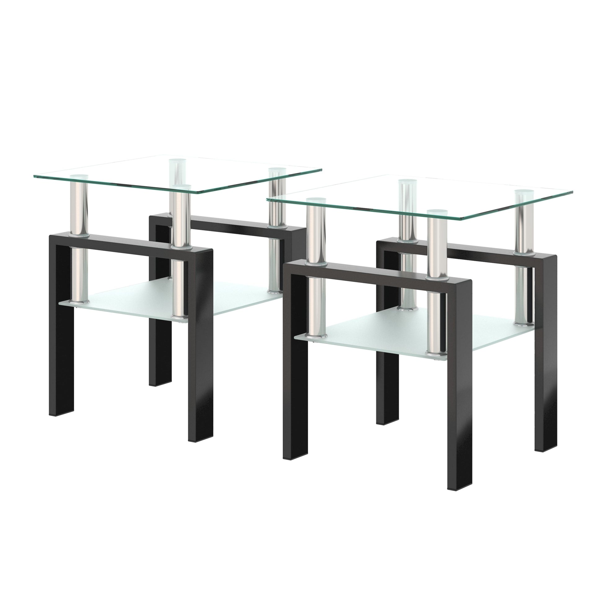 Modern Tempered Glass Tea Table, End Square Table For Living Room (Set of 2) - Transparent / Black