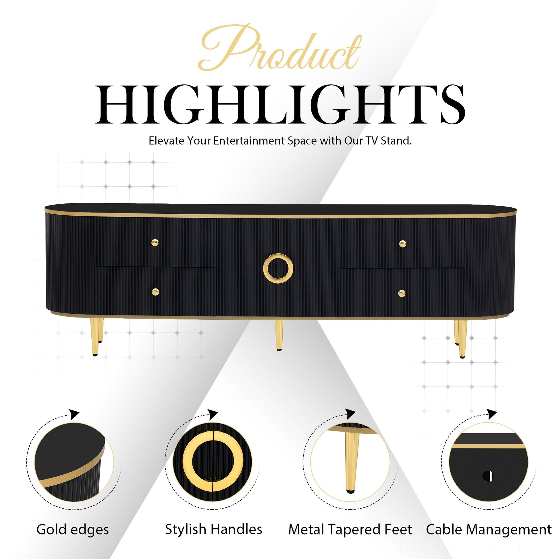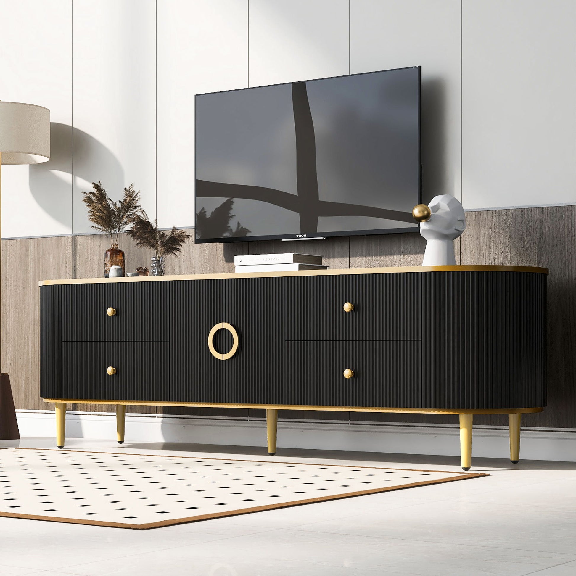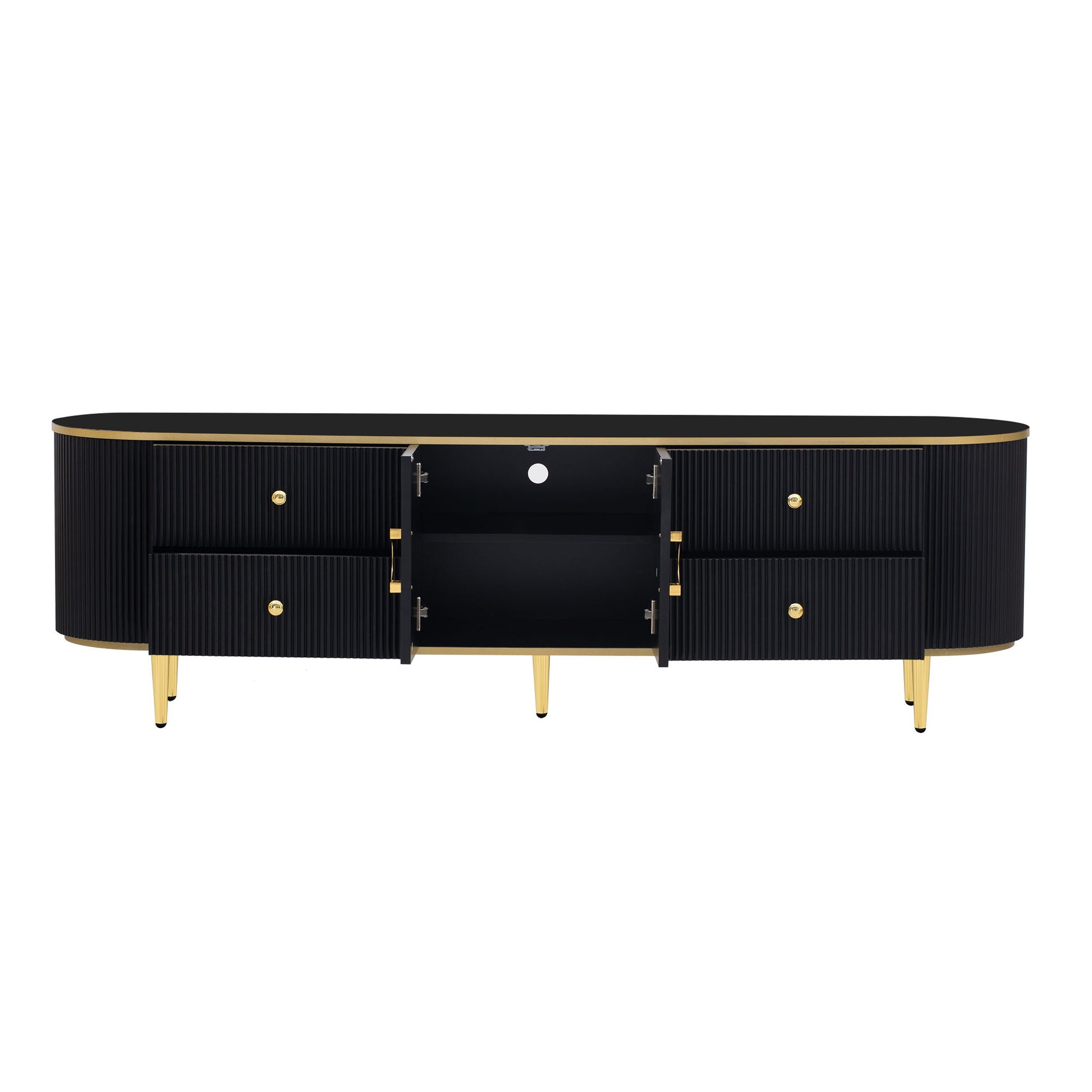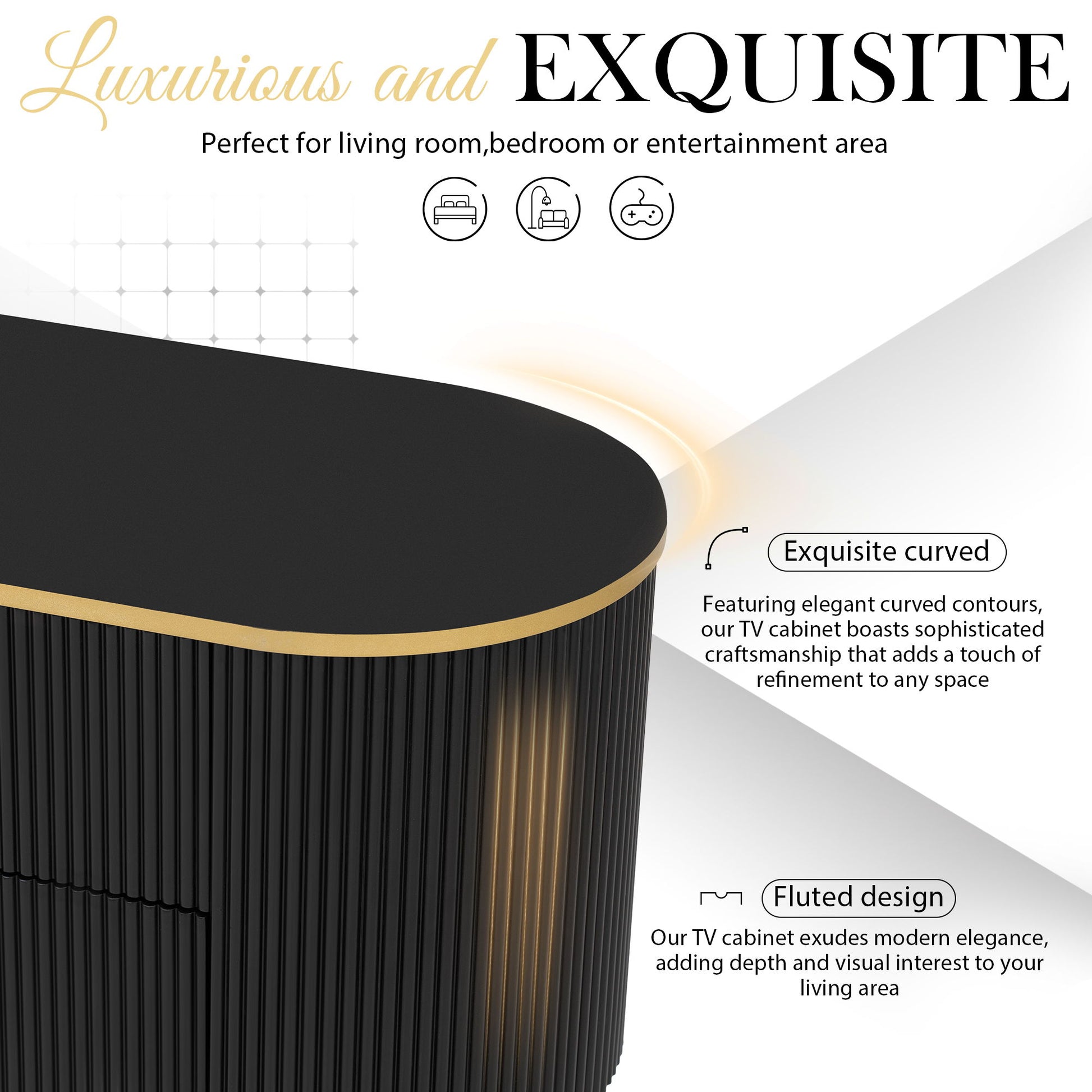 - Luxurious Design: Featuring sleek curves, gold accents, and metallic feet, this TV cabinet adds a touch of luxury and sophistication to your living room or entertainment space.
