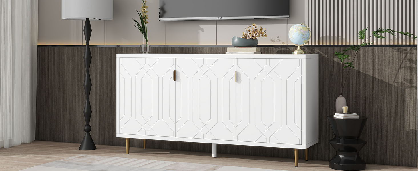 Modern TV Stand With 3 Doors And Adjustable Shelves For Living Room, Fits TVs Up To 70" - White