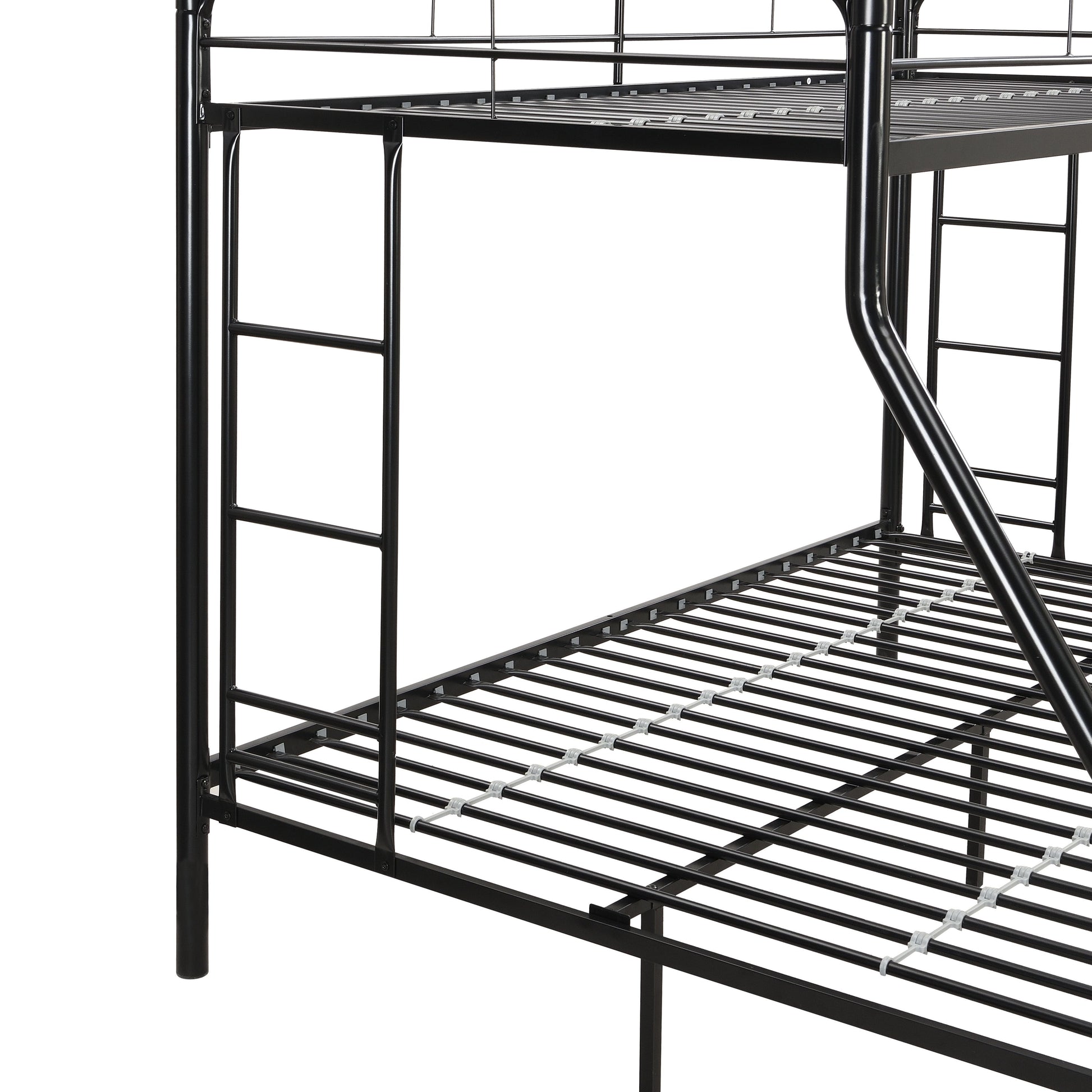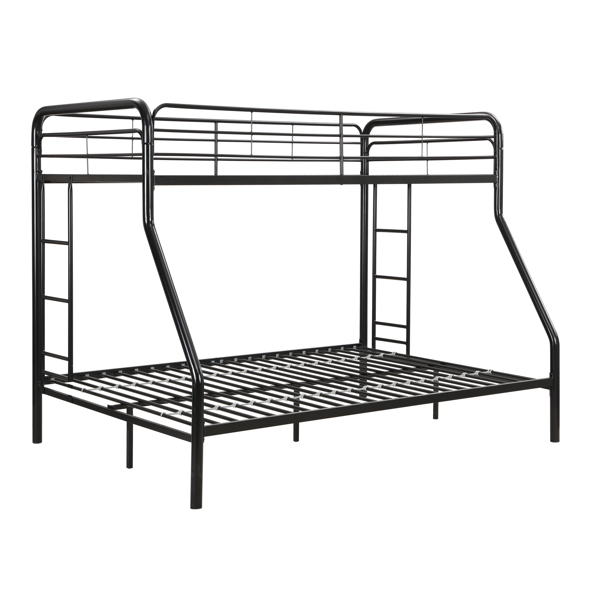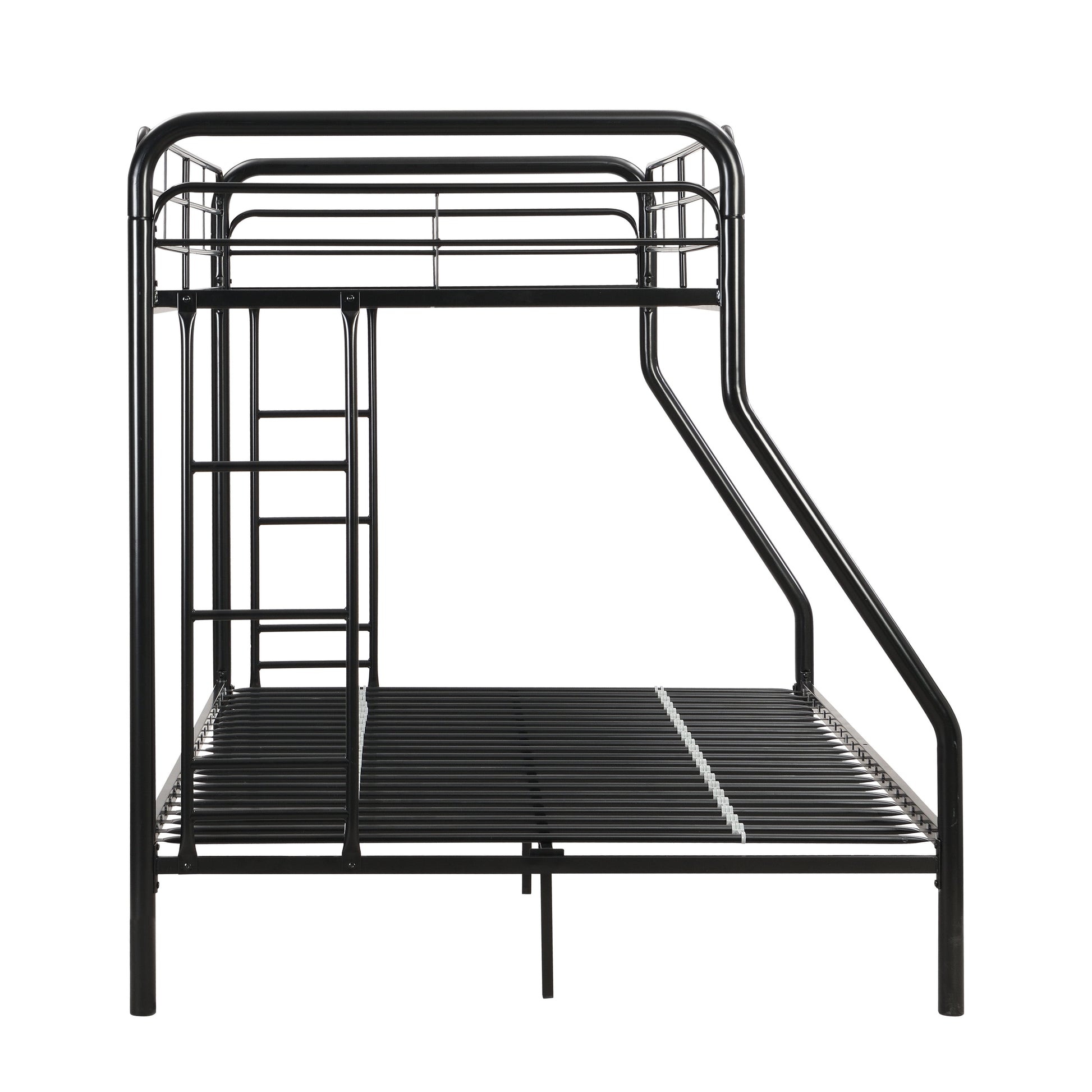 Modern Twin Over Full Metal Bunk Bed With Trundle And Dual Side Ladder And Metal Design - Black / Brown