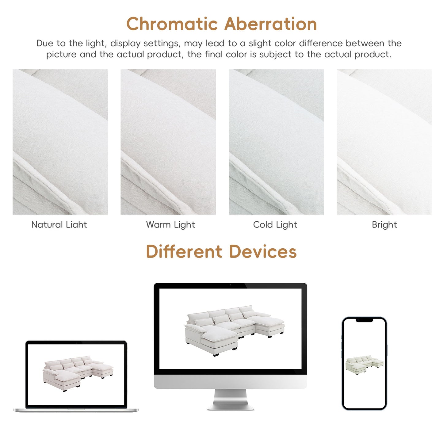 Modern U-Shaped Sectional Sofa With Waist Pillows, 6 Seat Upholstered Symmetrical Sofa Furniture, Sleeper Sofa Couch With Chaise Lounge - White