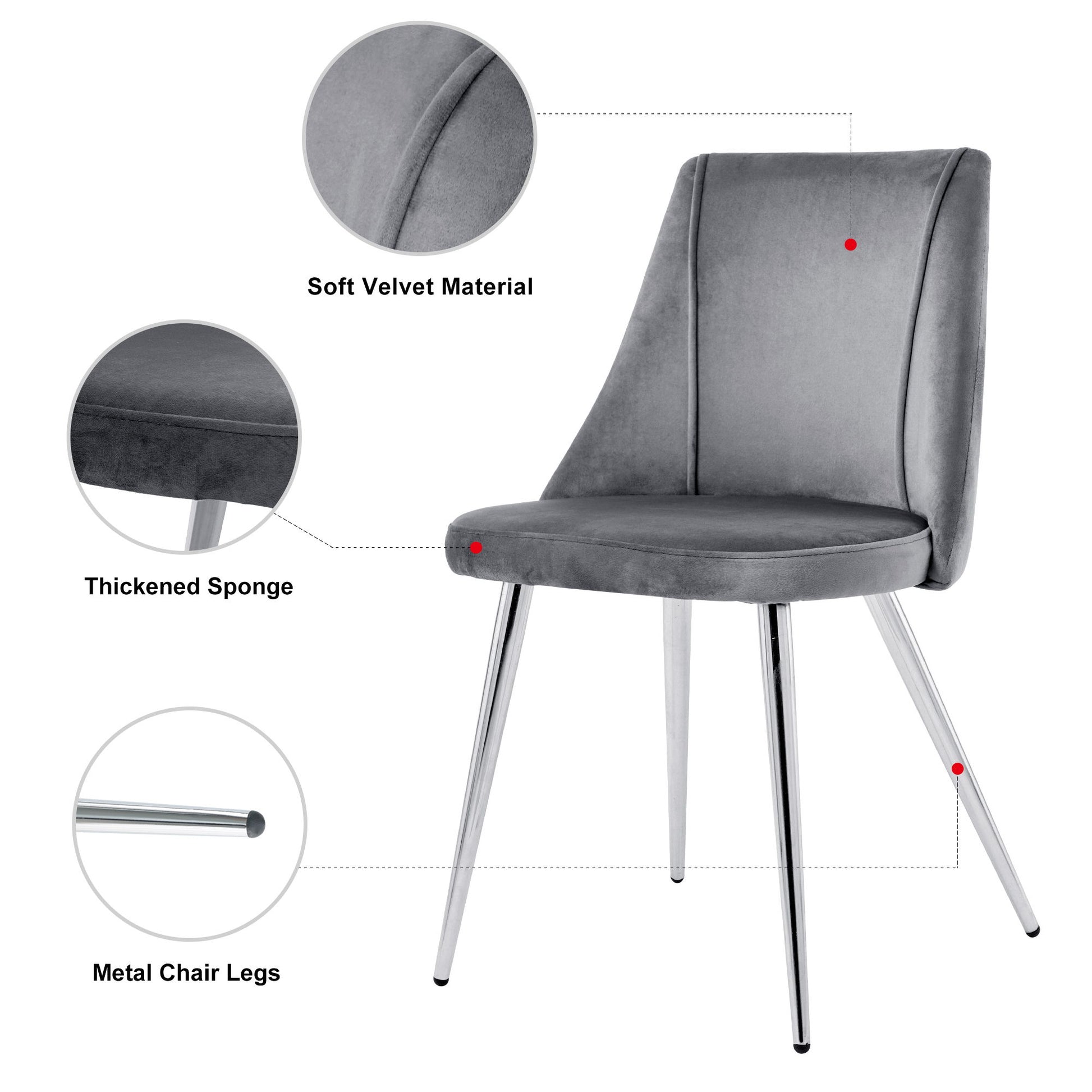 Modern Velvet Dining Chairs, Upholstered Accent Chairs With Chrome Legs For Home And Kitchen - Gray