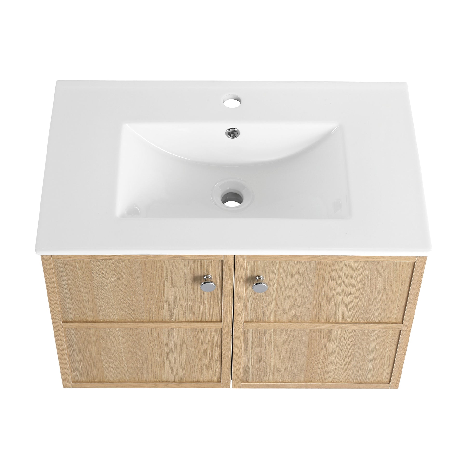 Modern Wall Mounted 30" Bathroom Vanity With Ceramic Sink And Soft Closing Doors - Oak