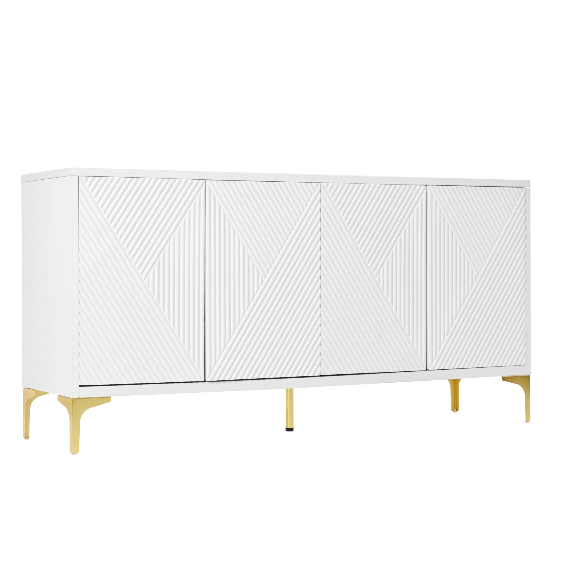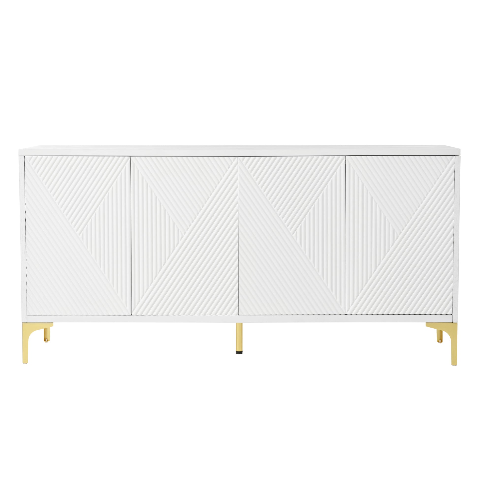 Modern Wood Sideboard Cabinet With Carved Door Panels, Adjustable Shelves, And Sturdy Metal Legs - White
