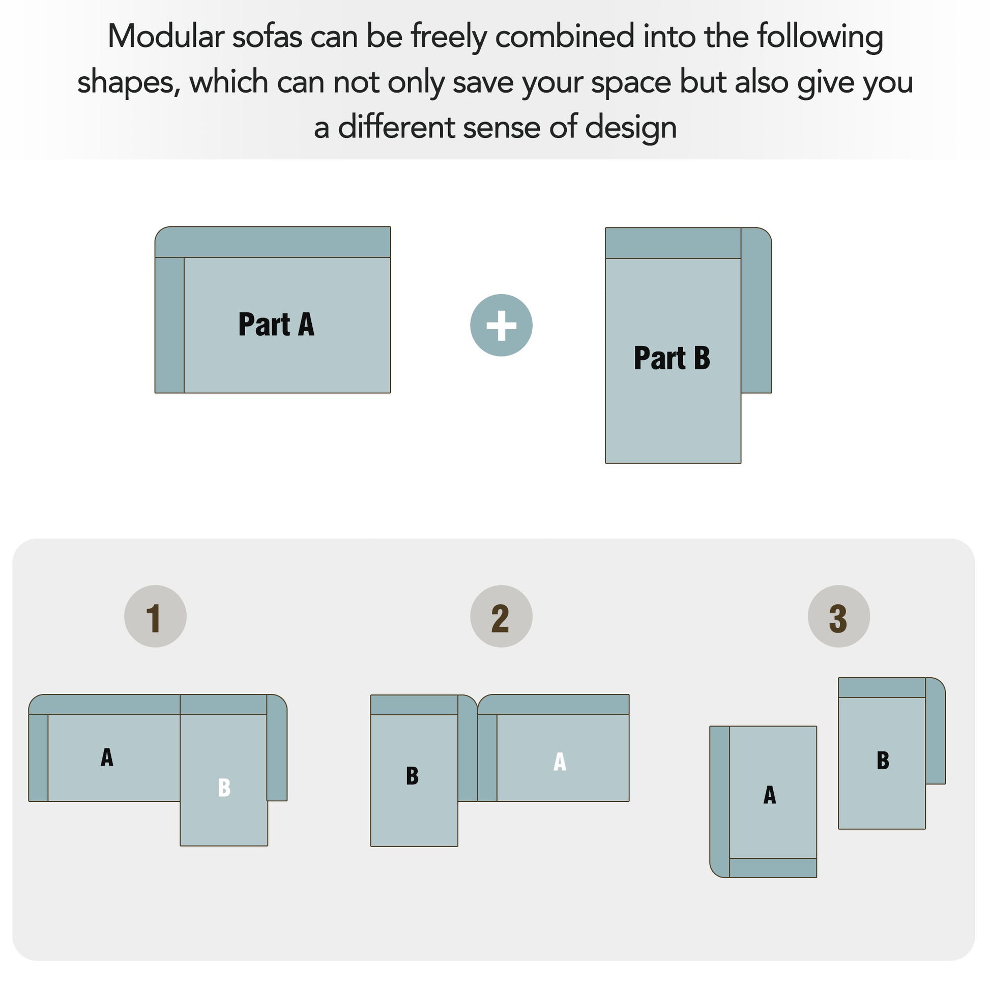 Modular Combination Living Room Sofa Set, Modern Minimalist Sofa, Living Room Upholstered Sofa Bed, Bedroom, 2 Pieces Computer Free Combination, L - Shaped - Light Gray