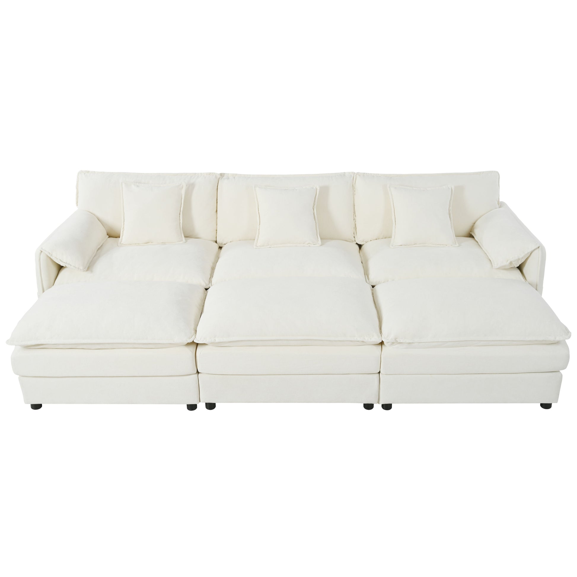 Modular Oversized Deep Seat Sectional Cloud Sofa Sleeper With 3 Ottomans & Soft Pillows - Beige