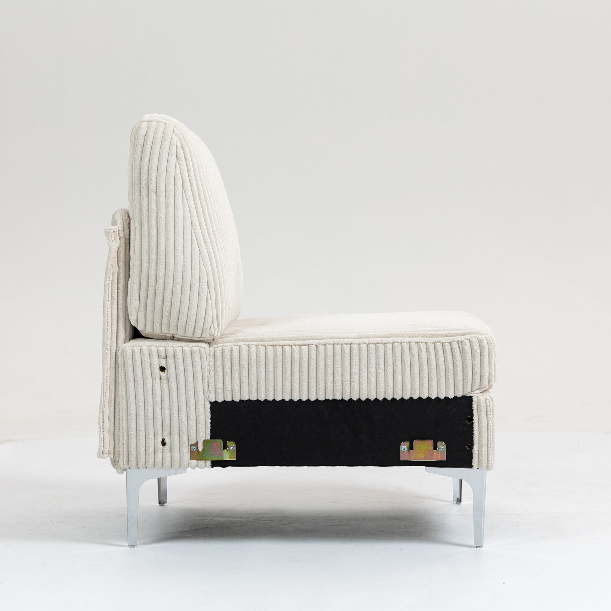 Modular Sectional Sofa Armless Seat Module, Corduroy Sectional Couch, Single Couch Modular Armless Accent Chair With Back Cushion - Beige