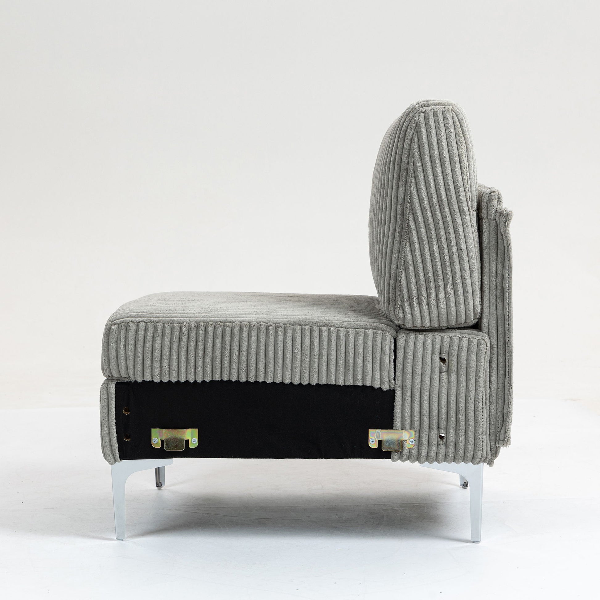 Modular Sectional Sofa Armless Seat Module, Corduroy Sectional Couch, Single Couch Modular Armless Accent Chair With Back Cushion - Gray