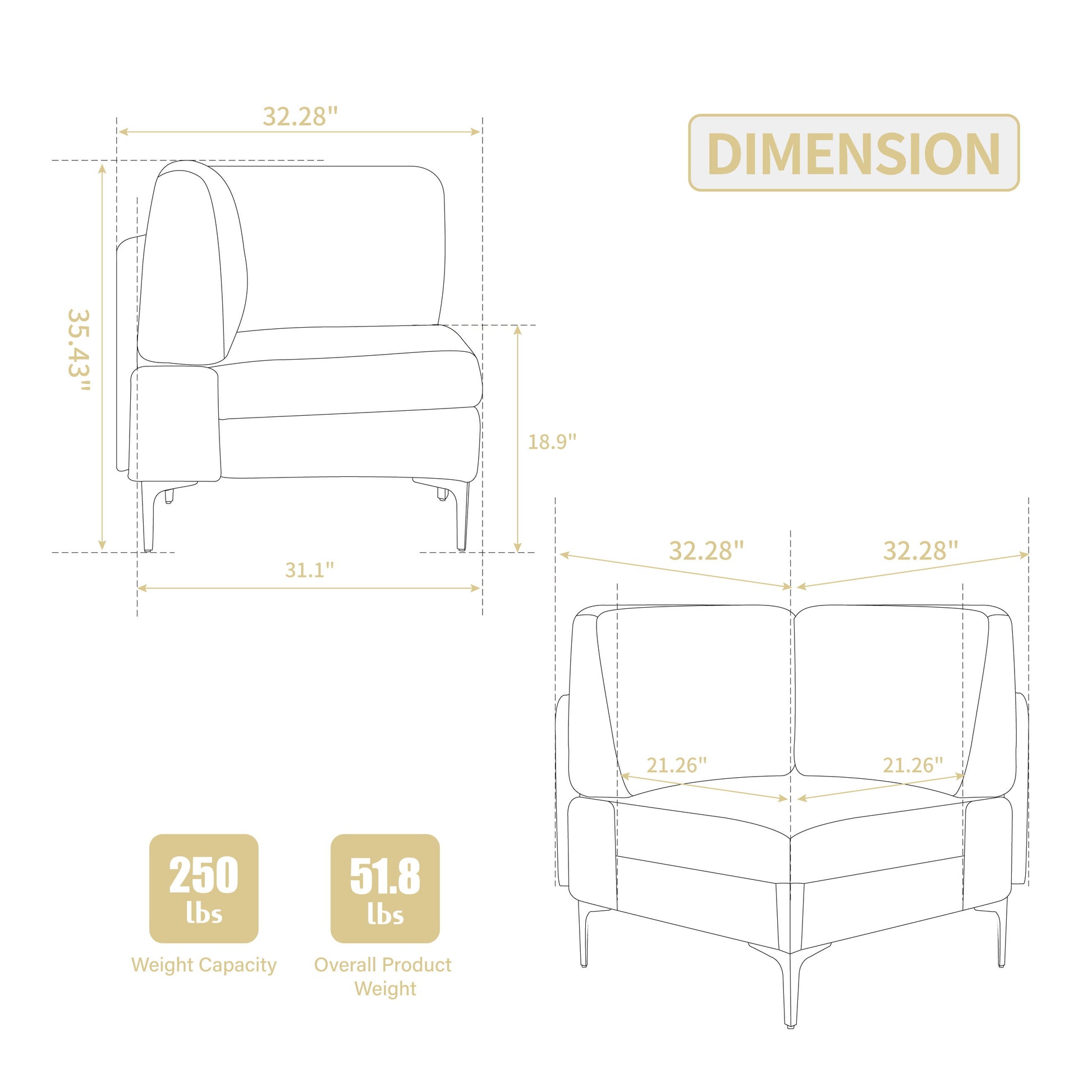 Modular Sectional Sofa Corner Seat, Middle Seat Module Couch - Beige