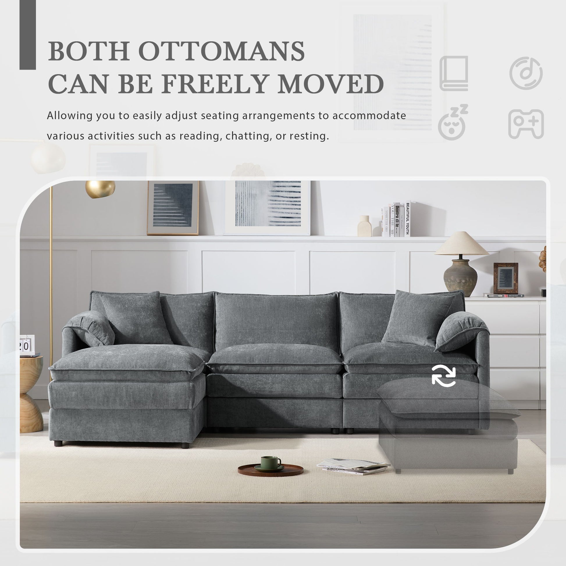 Modular Sectional With Deep And Wide Seat, L Shaped Cloud Couch Set With Double Cushions 4 Seat Sofa With Movable Ottoman Oversized - Dark Gray
