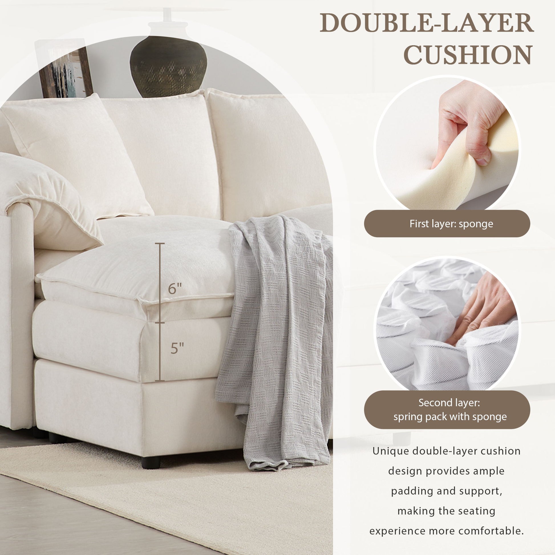 Modular Sectional With Deep And Wide Seat, U Shaped Cloud Couch Set With Double Cushions 6 Seat Sofa With Movable Ottomans Oversized - Cream