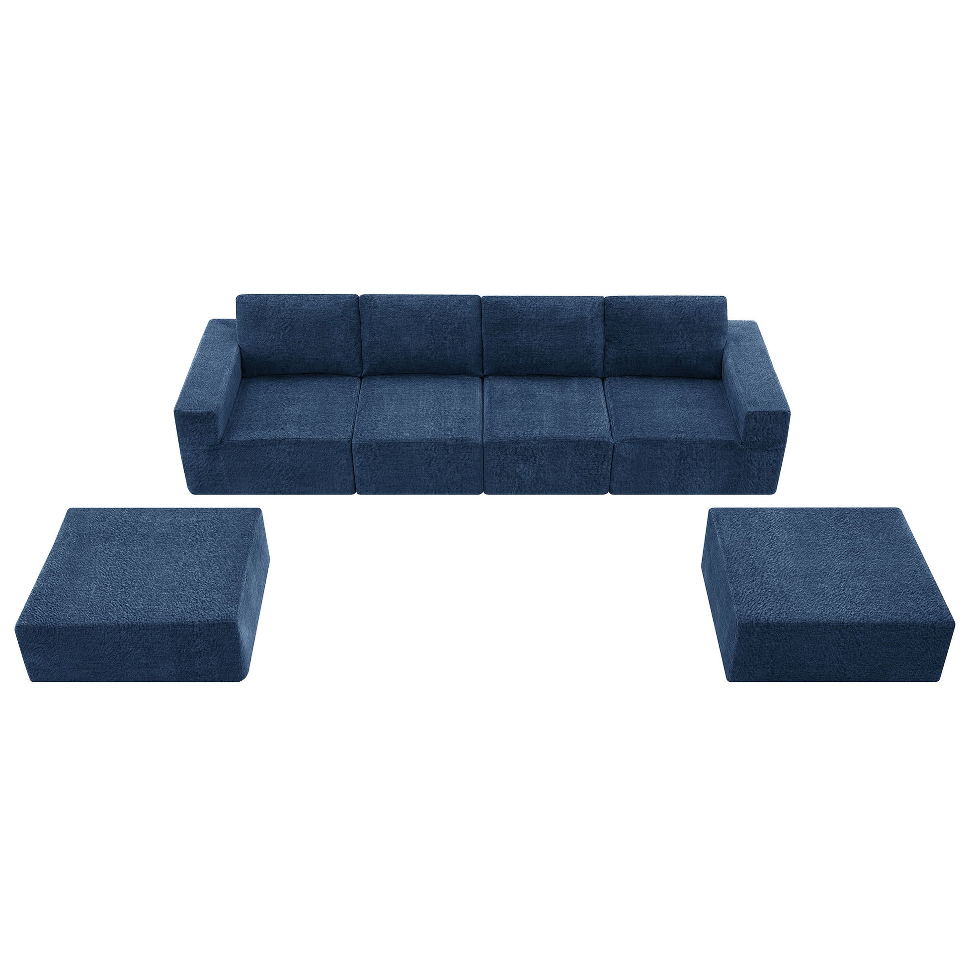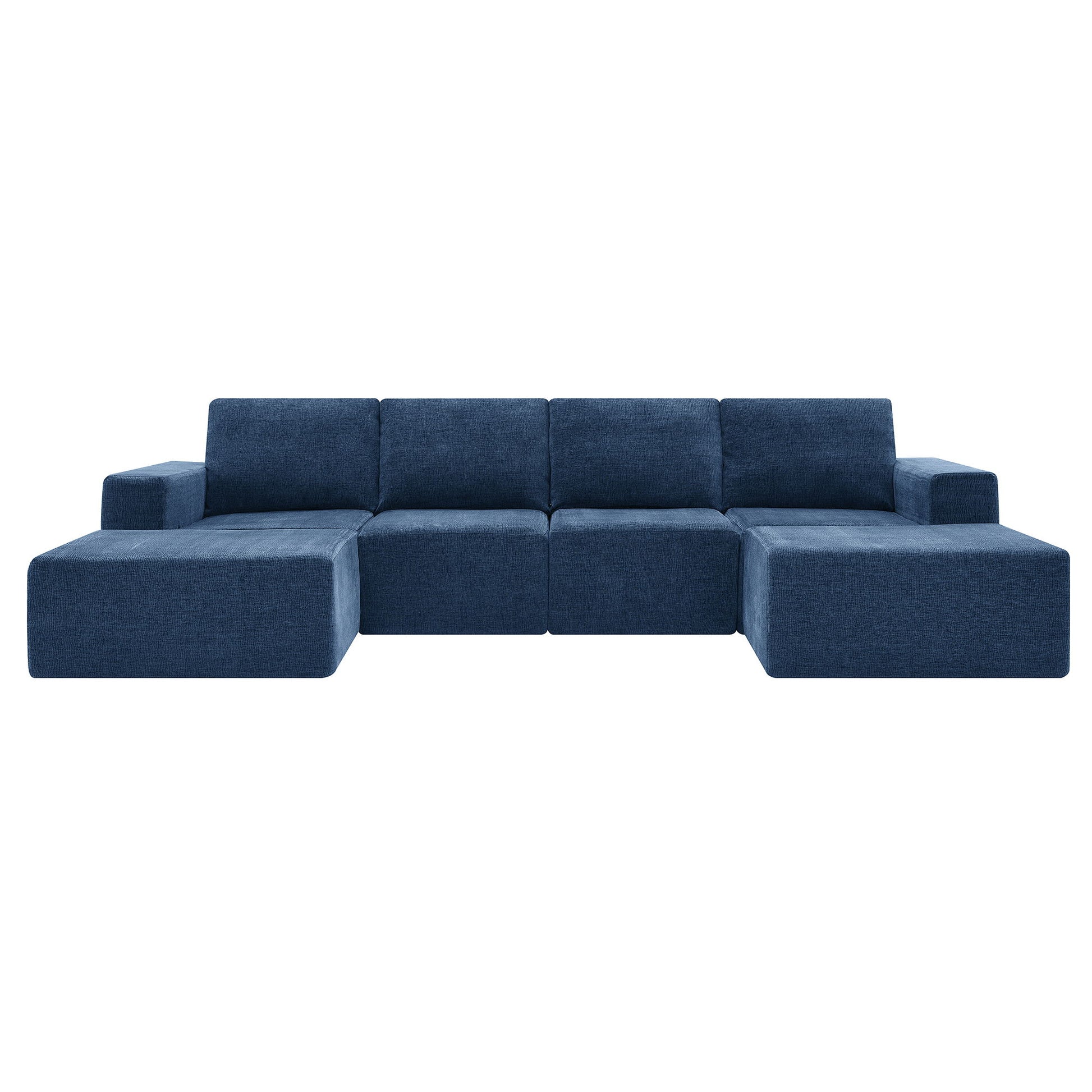Modular U Shaped Sectional With Ottomans, Luxury Cloud Floor Couch With Deep Seat Fully Compressed Upholstered Sofa - Navy