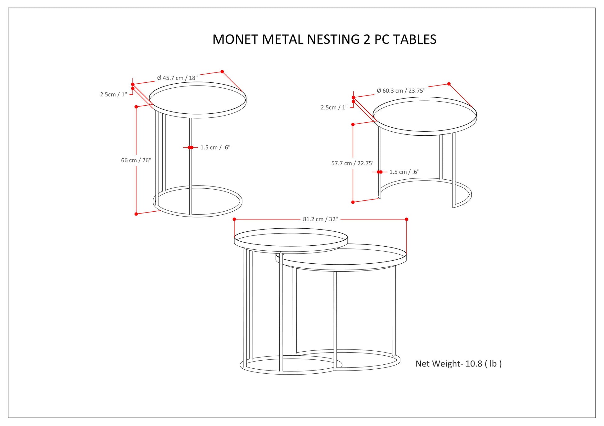 - Dimensions: Tall Table Size: 18" dia. X 26" H Short Table Size: 23.75" dia x 22.75 H "