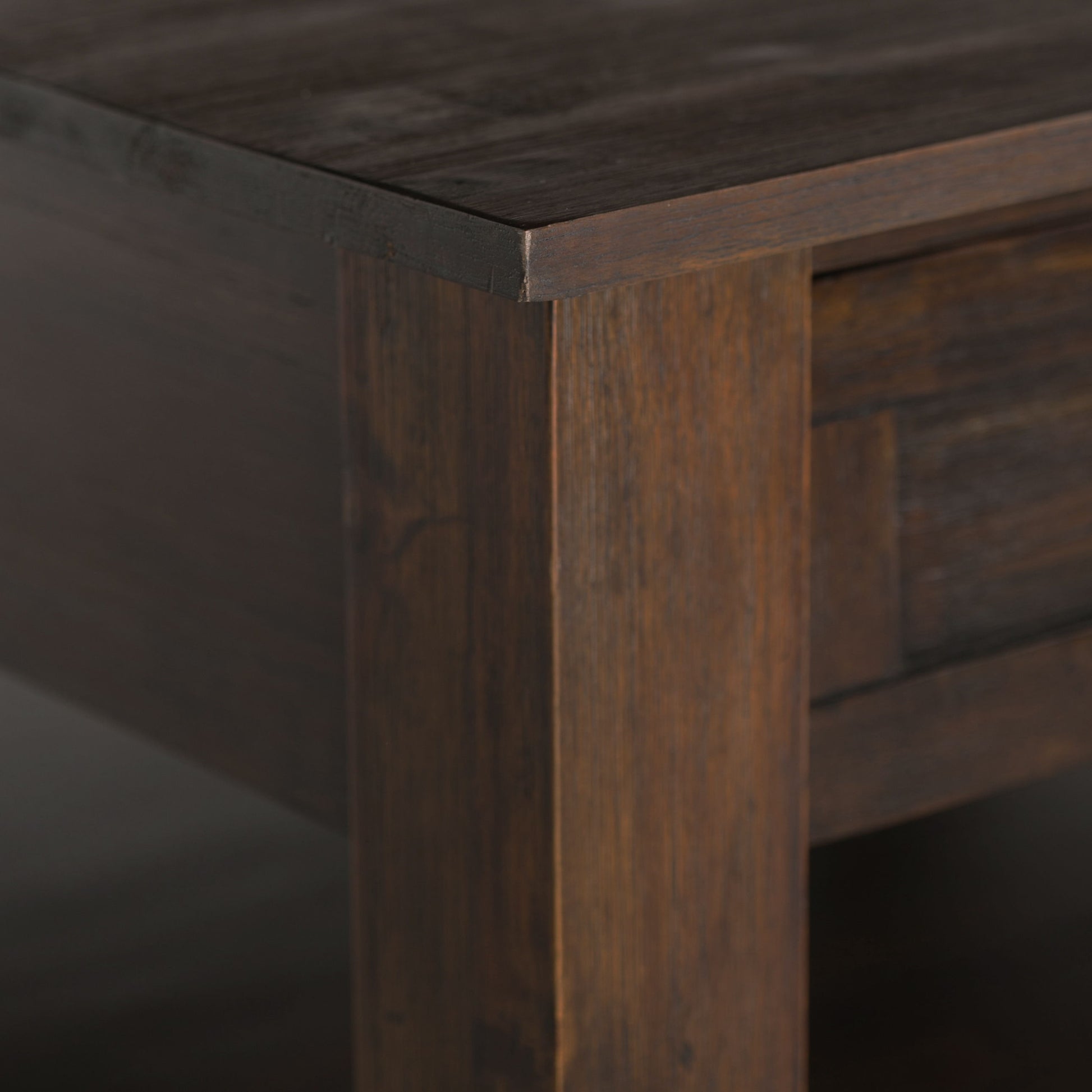 - Rustic design includes folding drawer pulls in an Antique Brass hardware finish