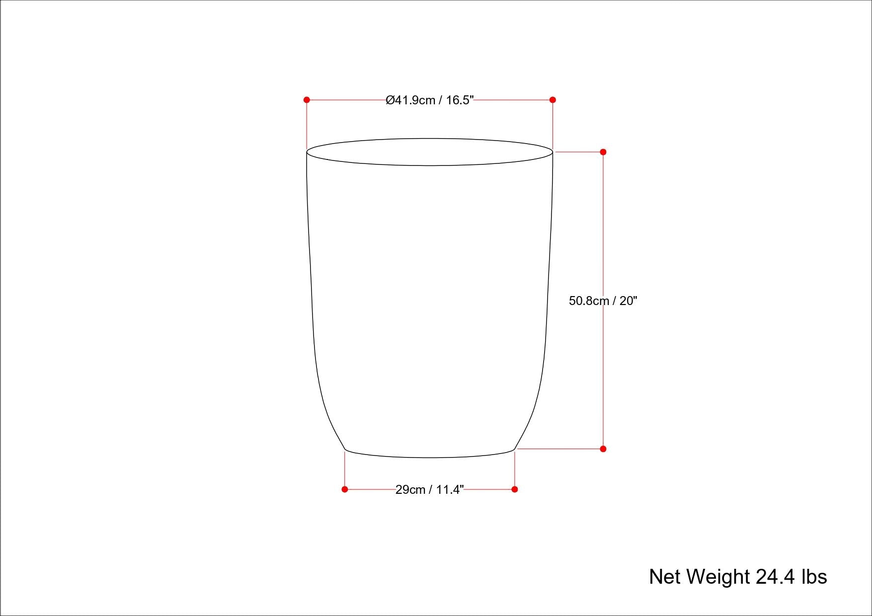 - Dimensions: 16.5" d x 16.5" w x 20" h