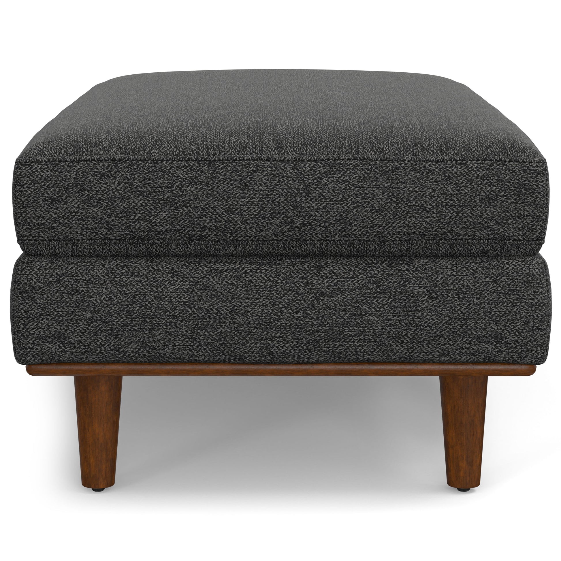- Large, handcrafted ottoman with mid-century modern styling can be used as a footrest and impromptu coffee table, or place it against one of the matching Morrison sofas to convert the couch into a flexible sectional; accommodates up to 300 lbs.