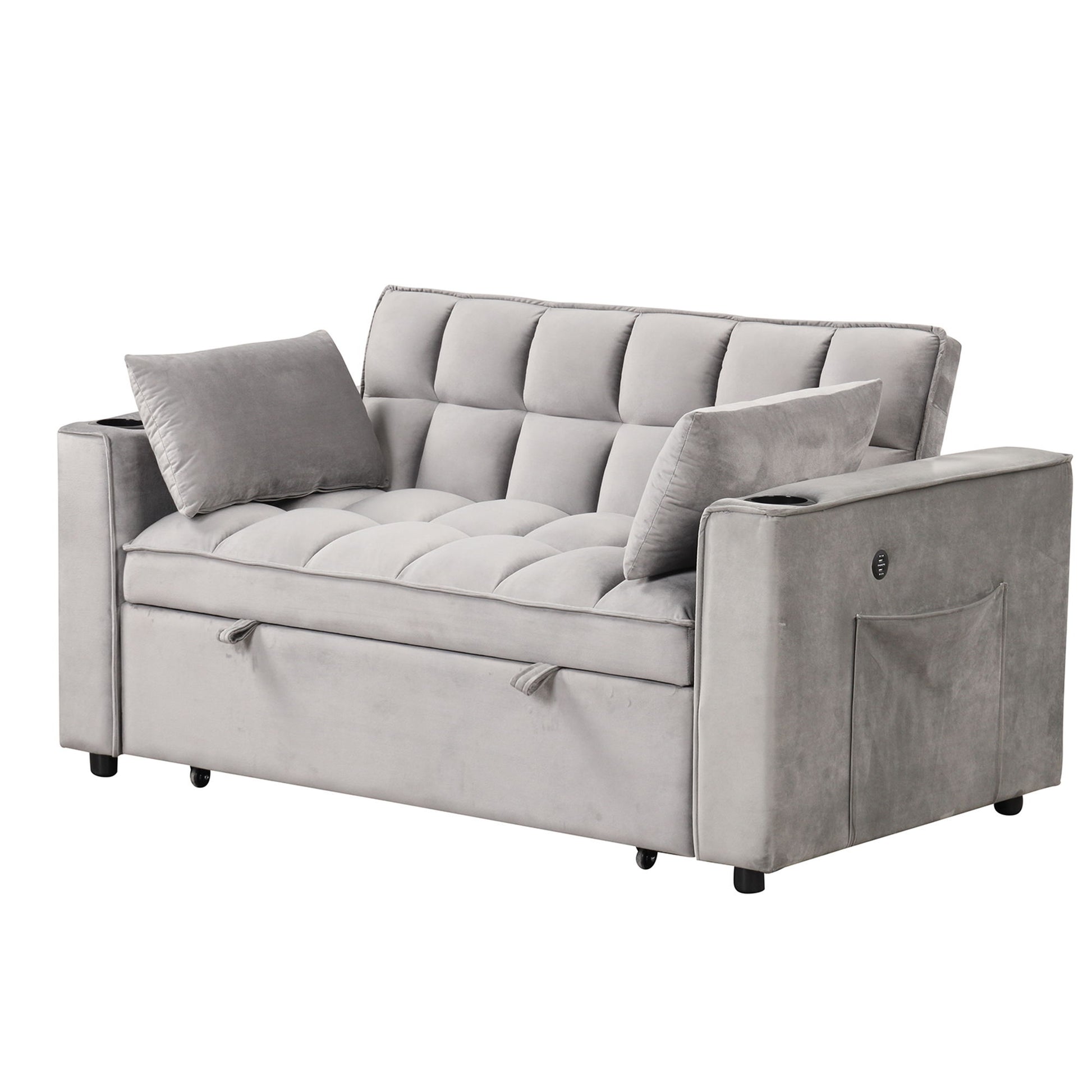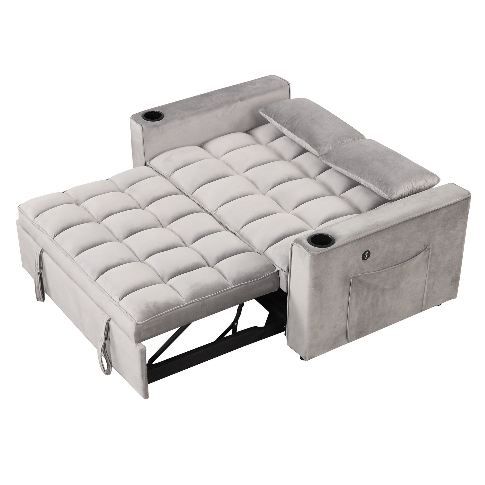 Multi Functional Sofa Bed With Cup Holder And USB Port For Living Room Or Apartments - Gray