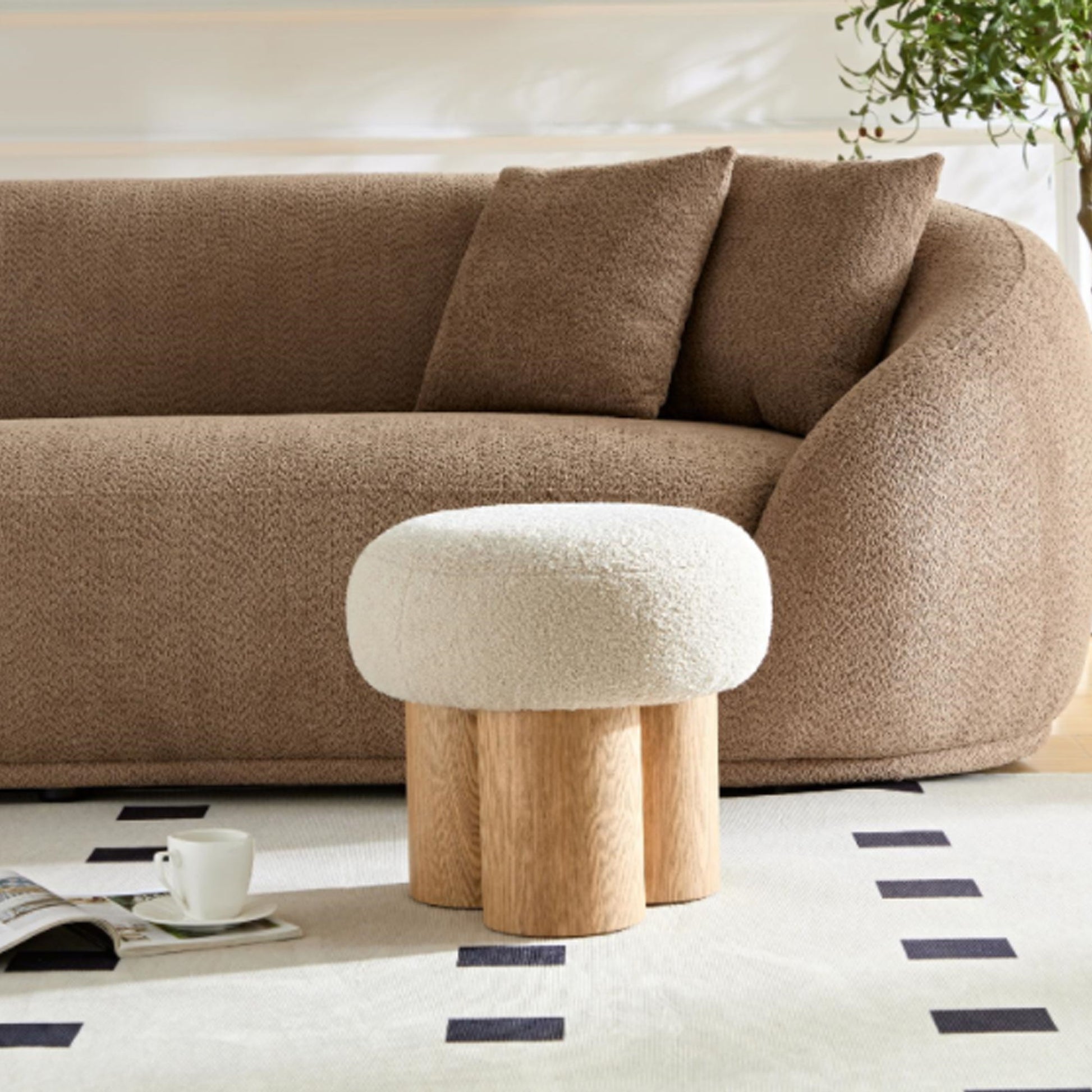 Mushroom Stool With Plush Cushion, Wooden Barrel Pipe - Greige / Walnut