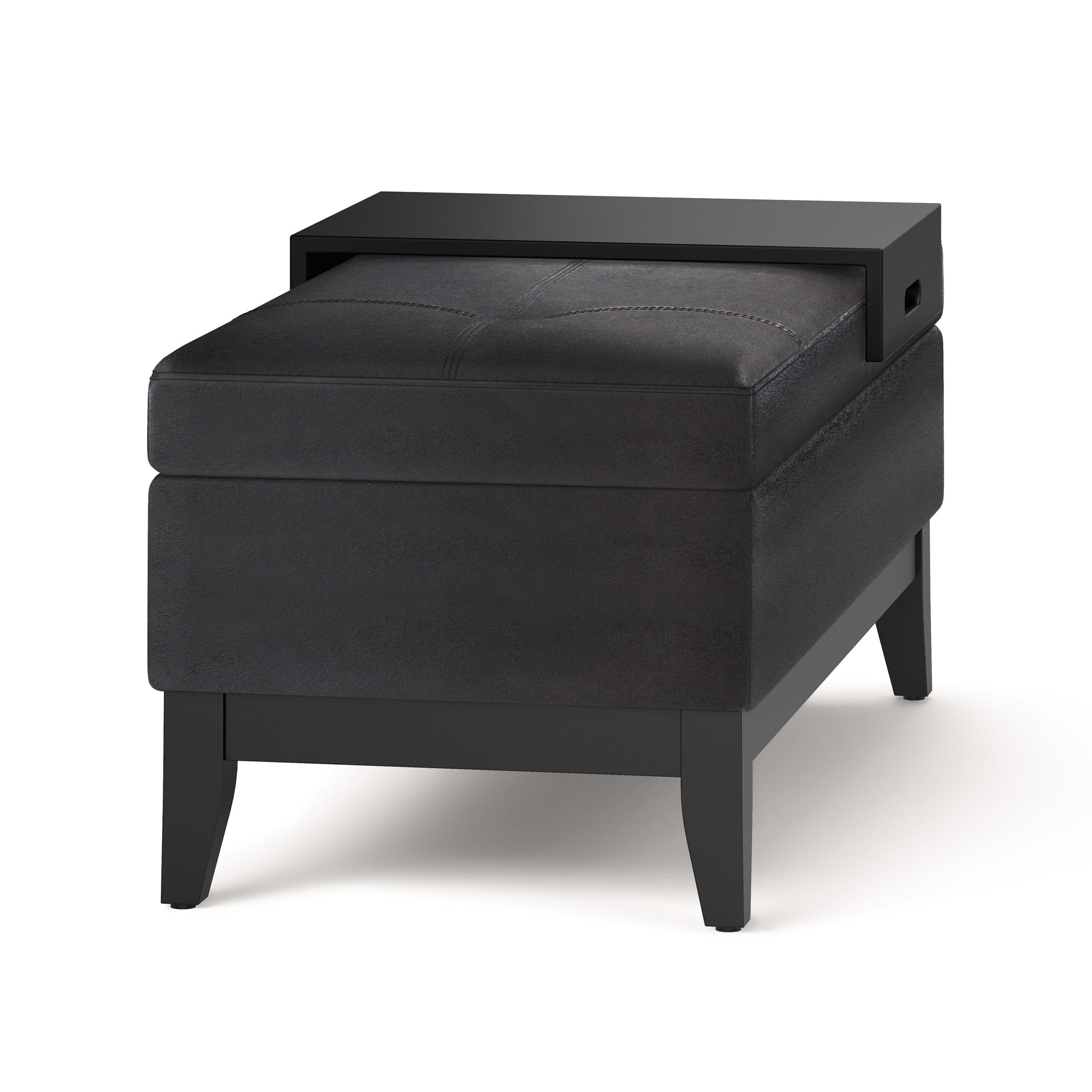 Oregon - Storage Ottoman Bench With Tray - Distressed Black