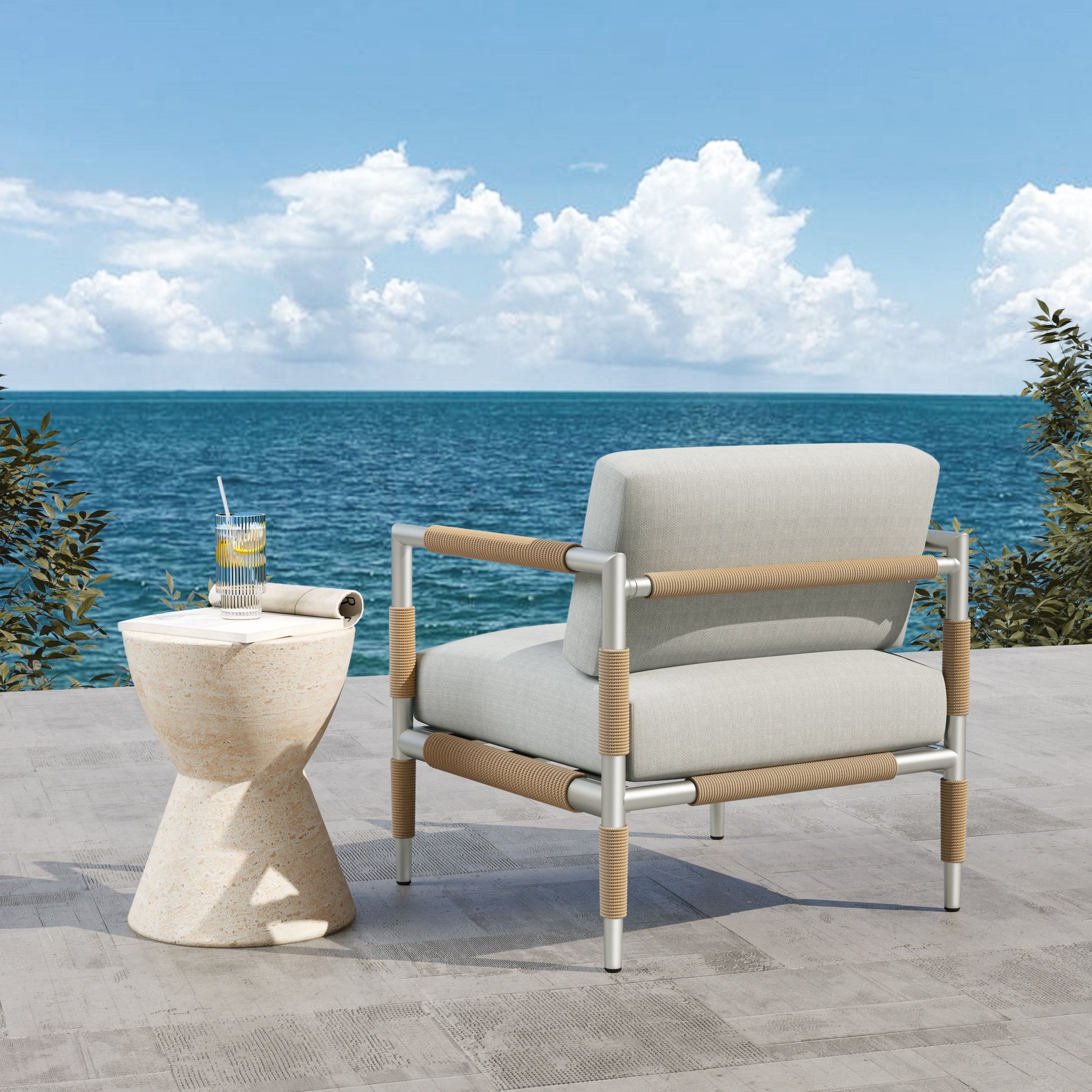 Oriana - Aluminum Outdoor Patio Armchair With Thick Cushions - Light Gray