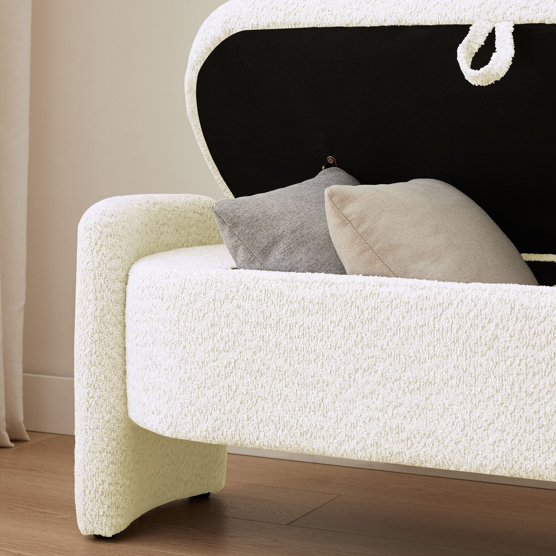 Ottoman Oval Storage Bench, 3D Lamb Fleece Bench With Large Storage Space For The Living Room, Entryway And Bedroom - Cream White