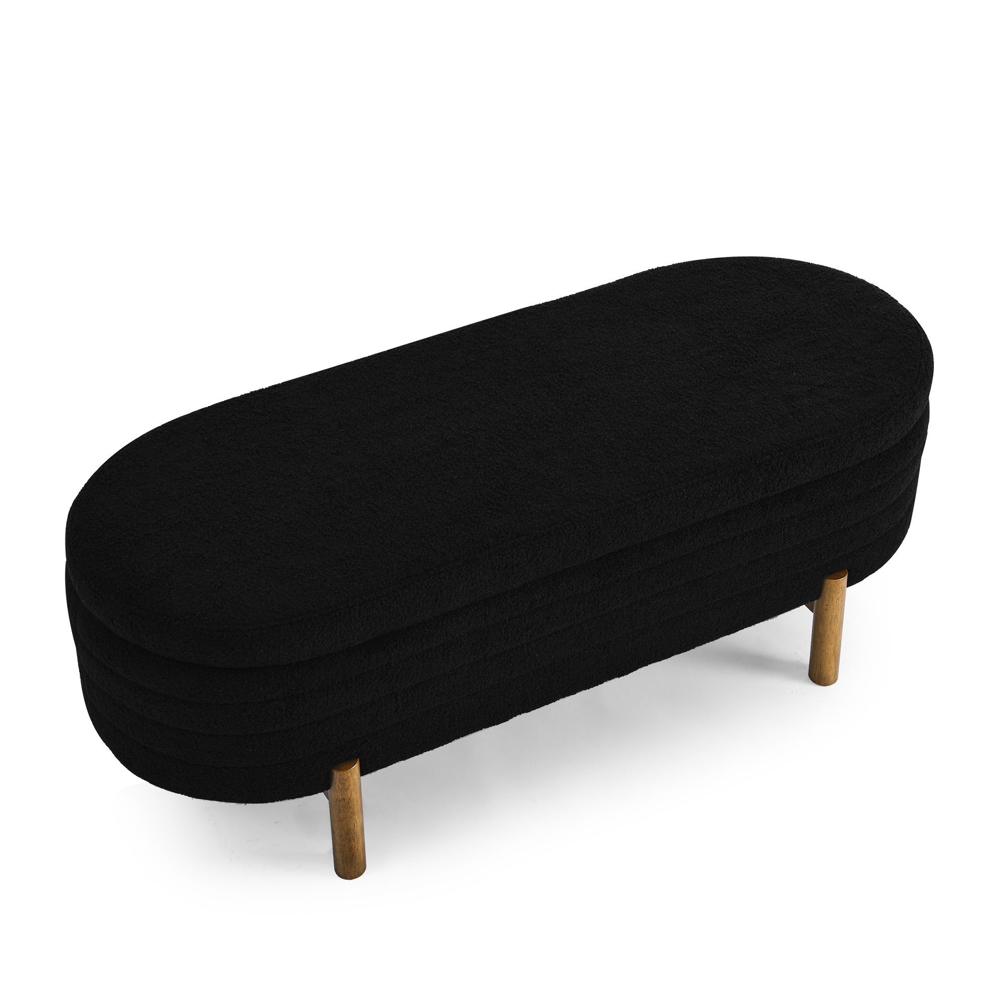 Ottoman Oval Storage Bench With Rubber Wood Legs - Black