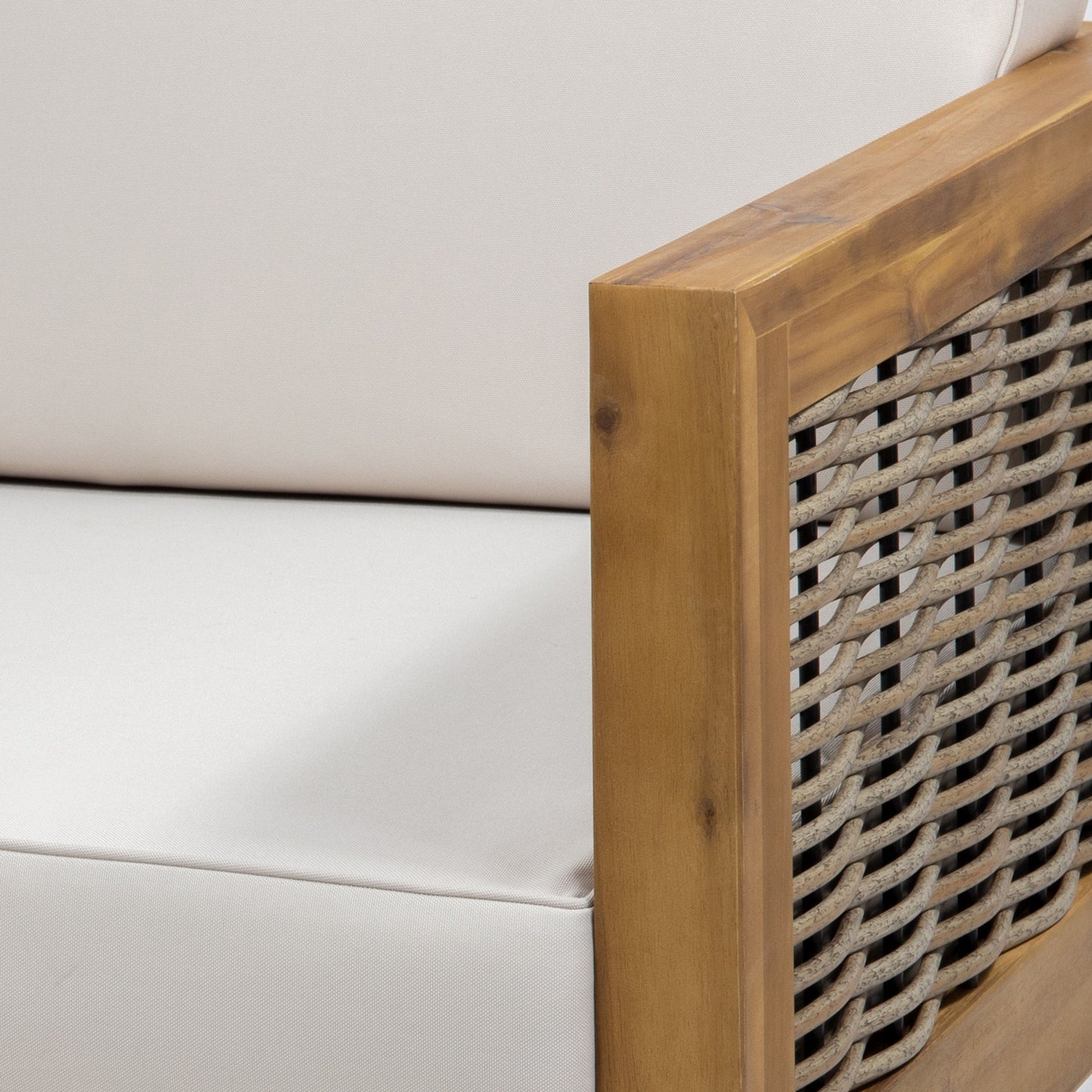 - Round Wicker Accents and Slat Panels: The backrests and armrests feature handcrafted wicker accents, while the seating showcases a beautiful open slat design. This combination delivers a breezy, natural style ideal for patios or backyards, with a charming