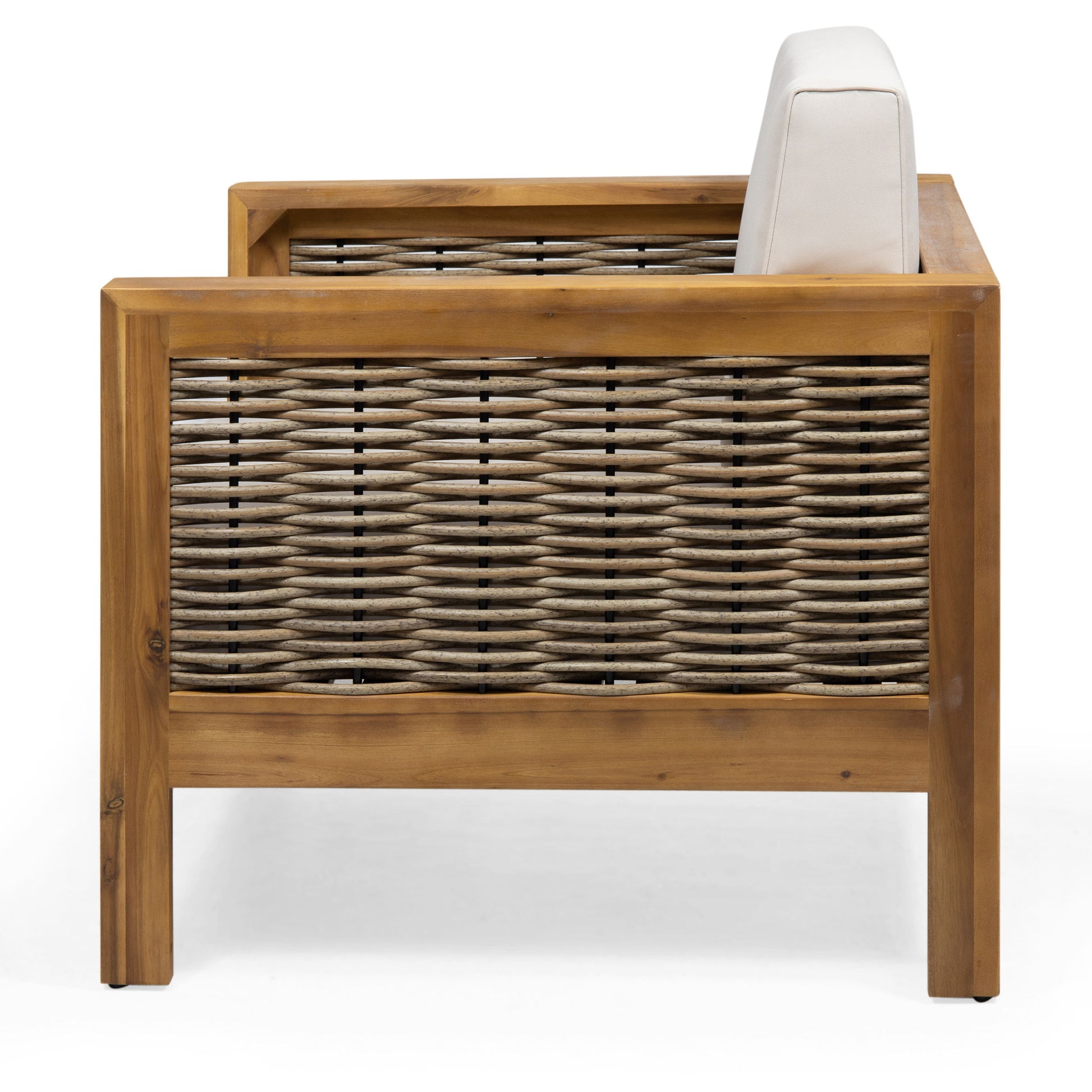 Outdoor 4 Seater Acacia Wood Chat Set With Wicker Accents And Cushions - Teak / Mixed Brown / Beige