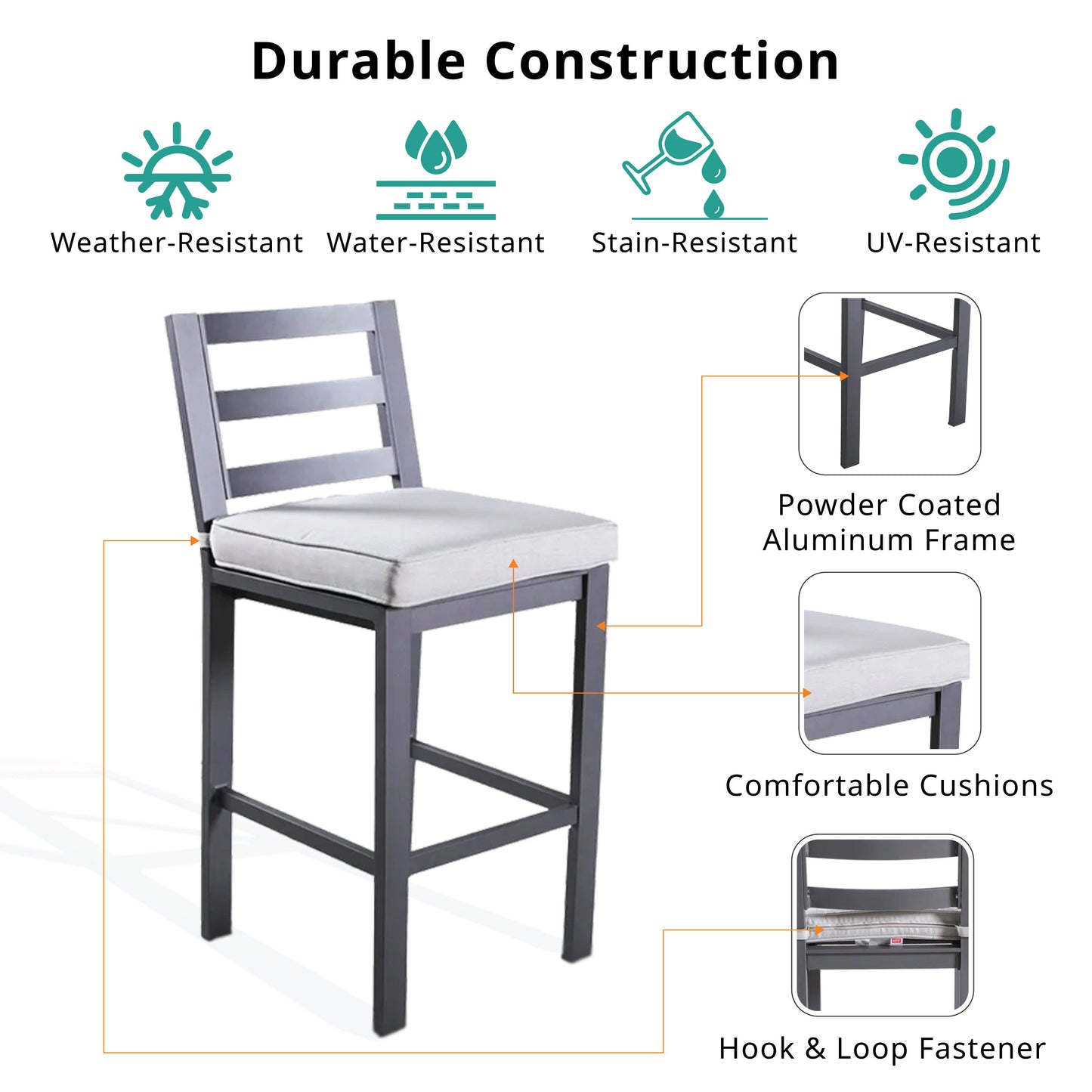 - Durable and Stylish Design: Crafted from rust-proof aluminum with a rich dark gray finish, this bar stool offers sophistication and durability for your outdoor space.