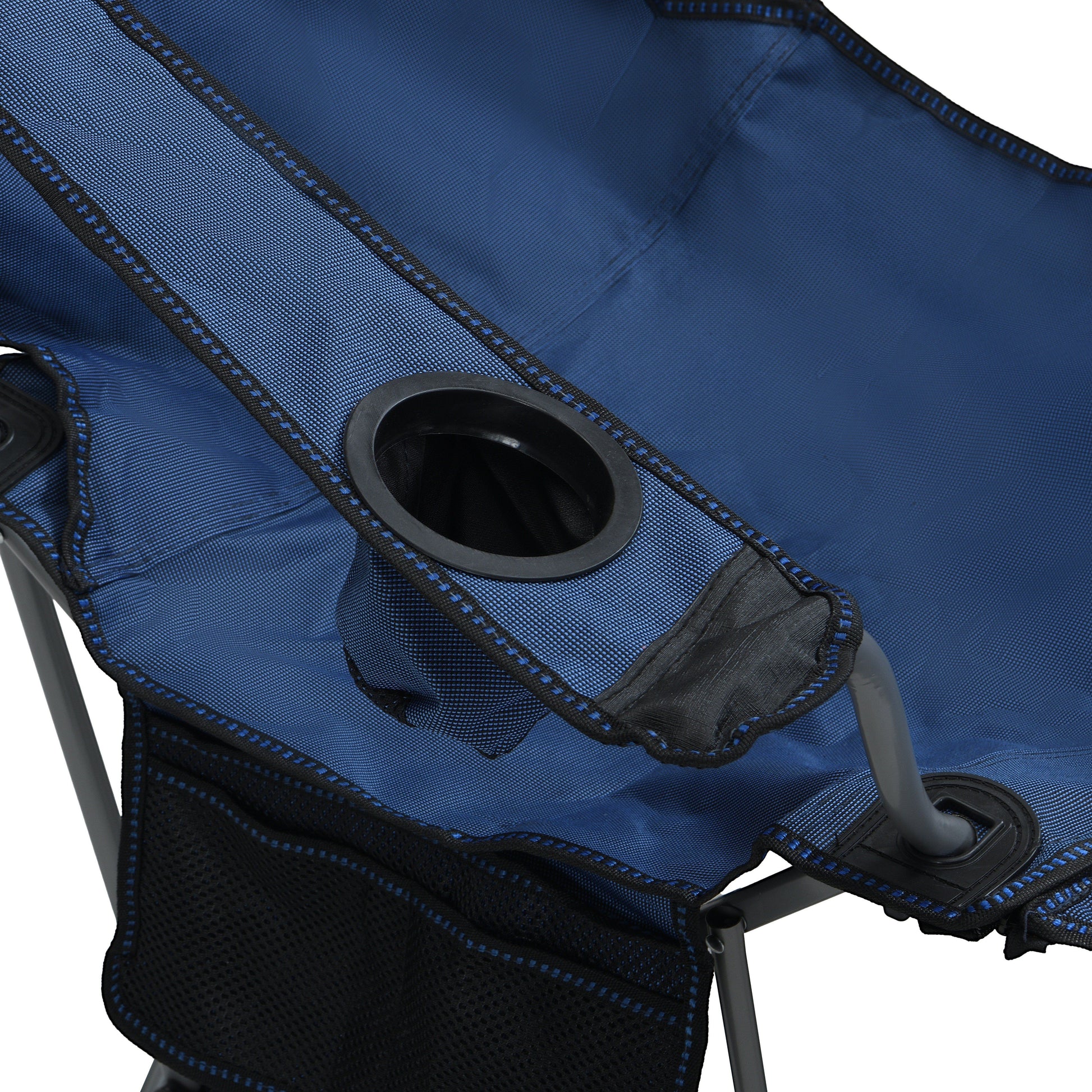 Outdoor Camping Chairs Folding Portable Adjustable Reclining Chair With Side Pockets & Cup Holder - Dark Blue